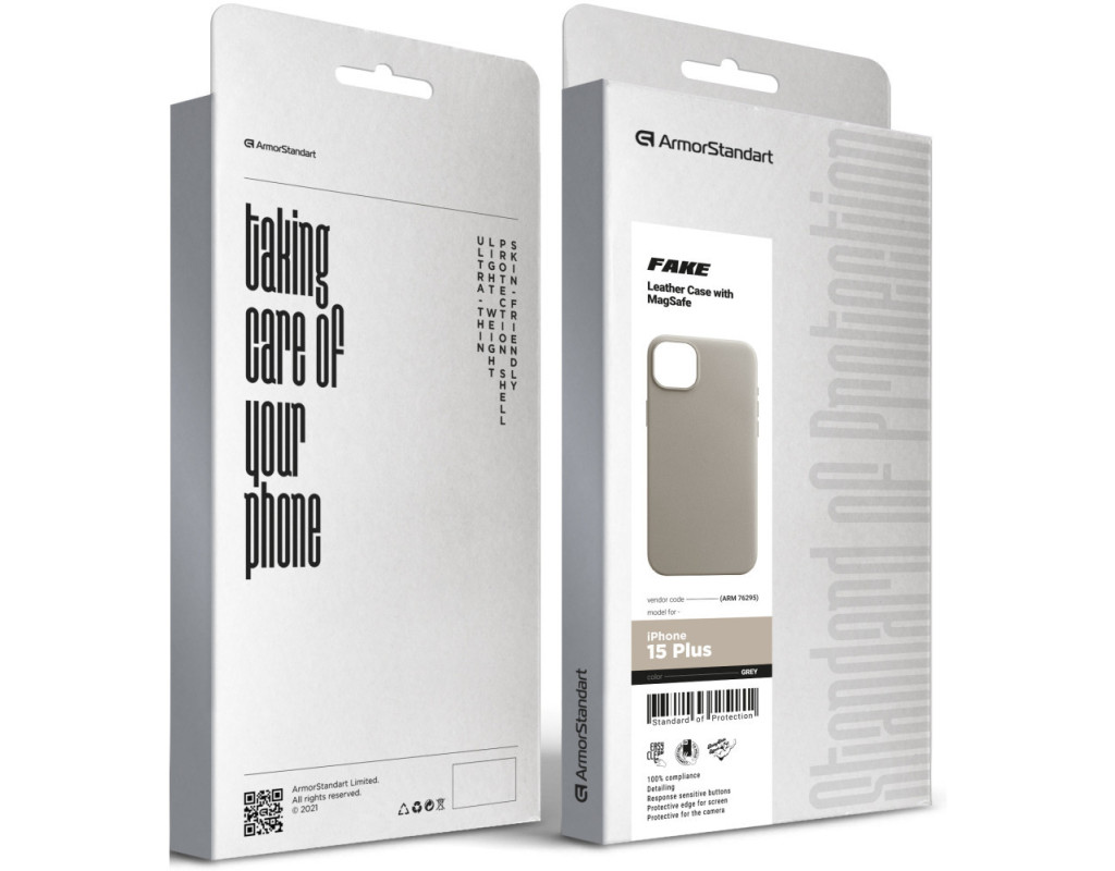 Чохол до мобільного телефона Armorstandart FAKE Leather Case Apple iPhone 15 Plus Grey (ARM76295)