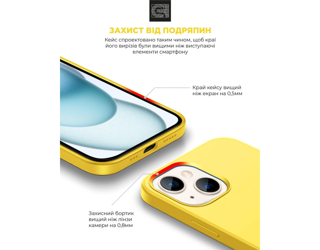 сумісність з моделями - Apple iPhone 15, Тип чохла для телефону - накладка, Призначення - модельний, Колір - жовтий