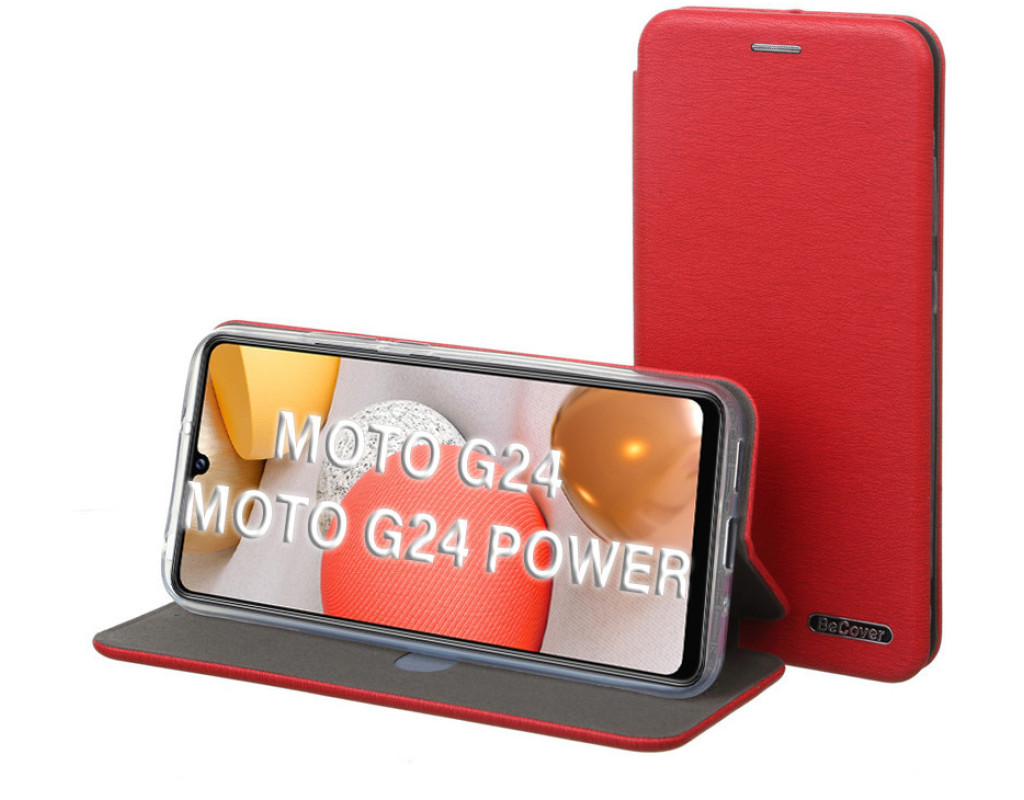 сумісність з моделями - Motorola G24, Motorola G24 Power, Тип чохла для телефону - книжка, Призначення - модельний, Матеріал - штучна шкіра, поліуретан, Колір - червоний