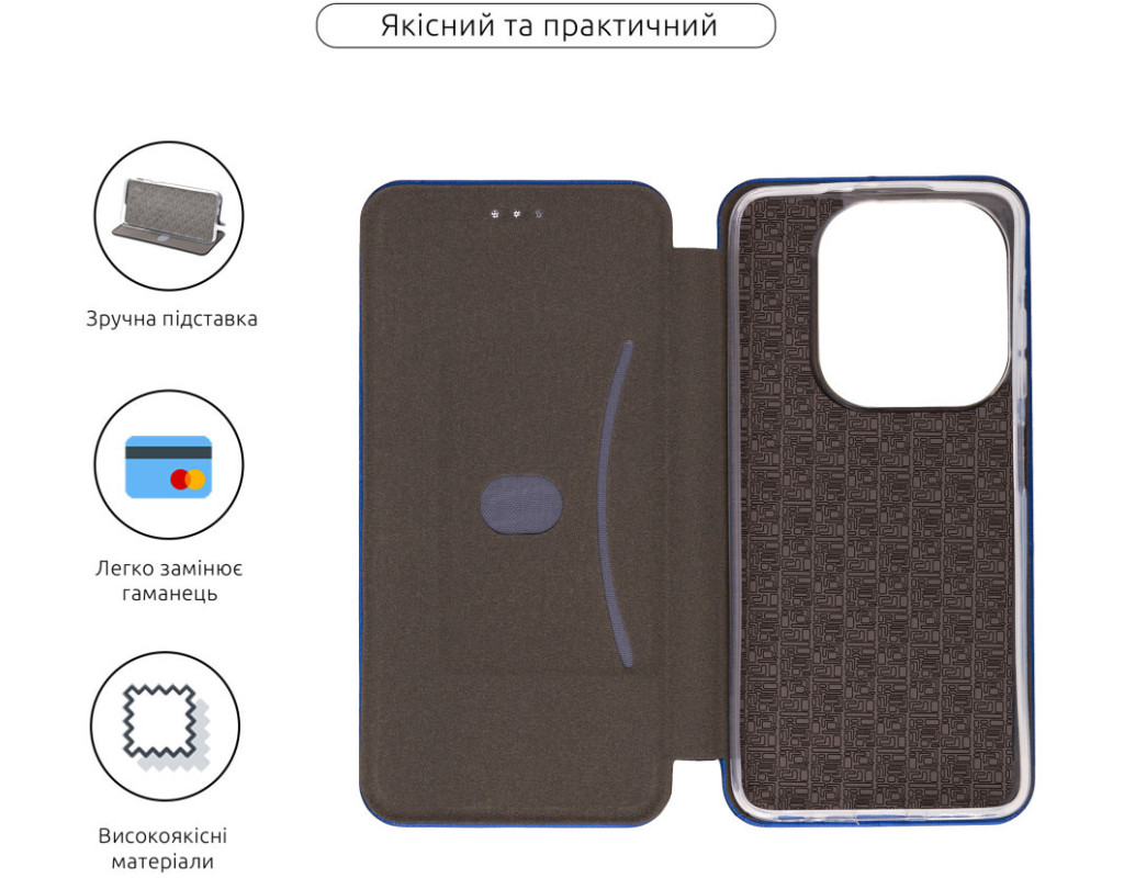 сумісність з моделями - Infinix Smart 8 Plus, Тип чохла для телефону - книжка, Призначення - модельний, Матеріал - поліуретан, Колір - синій