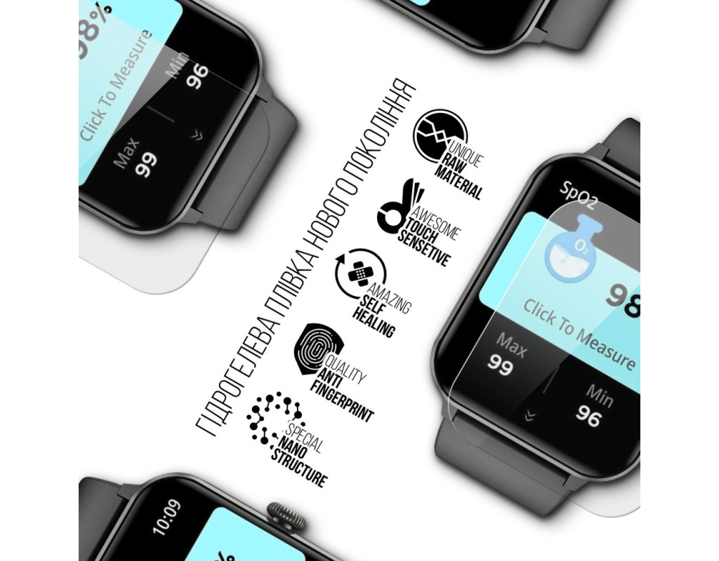 Призначення - для смарт годинника, Вид покриття - захисний, гідрогелева, Сумісність з моделями - Blackview R50, Кількість в упаковці - 6 шт