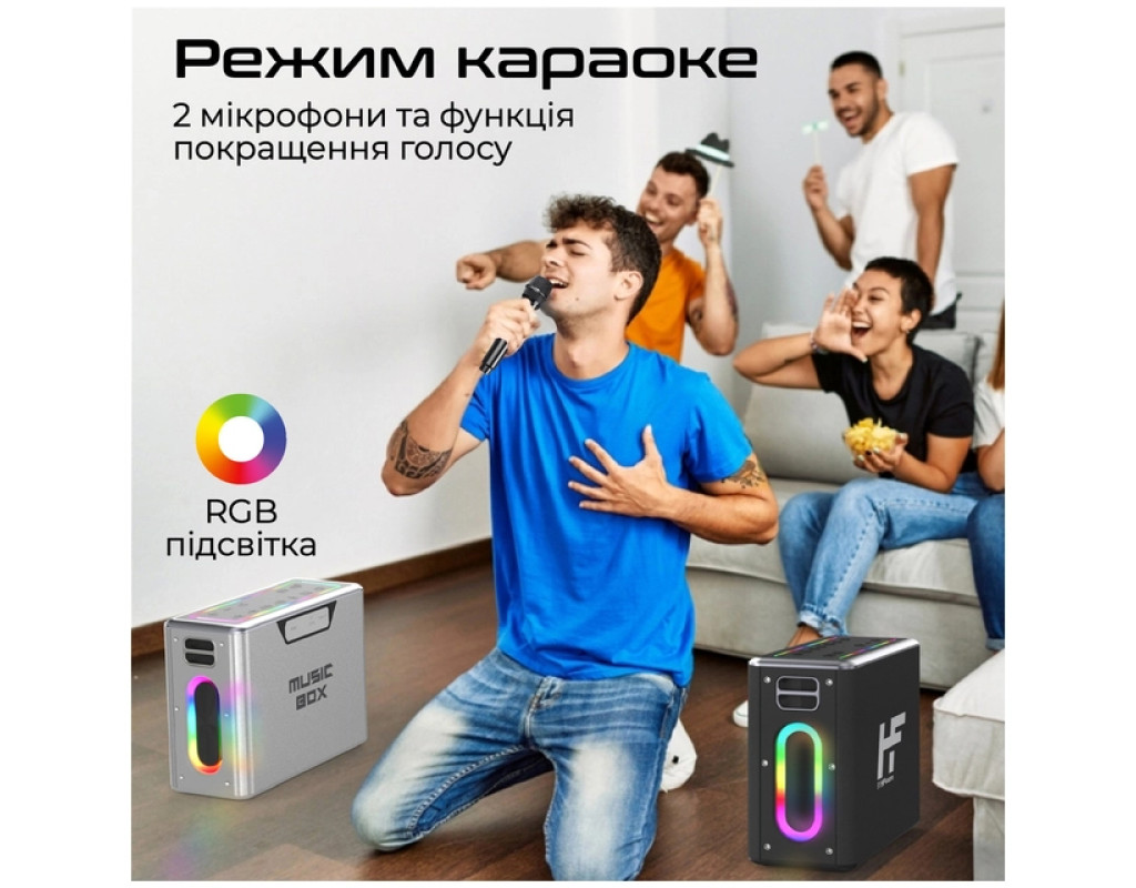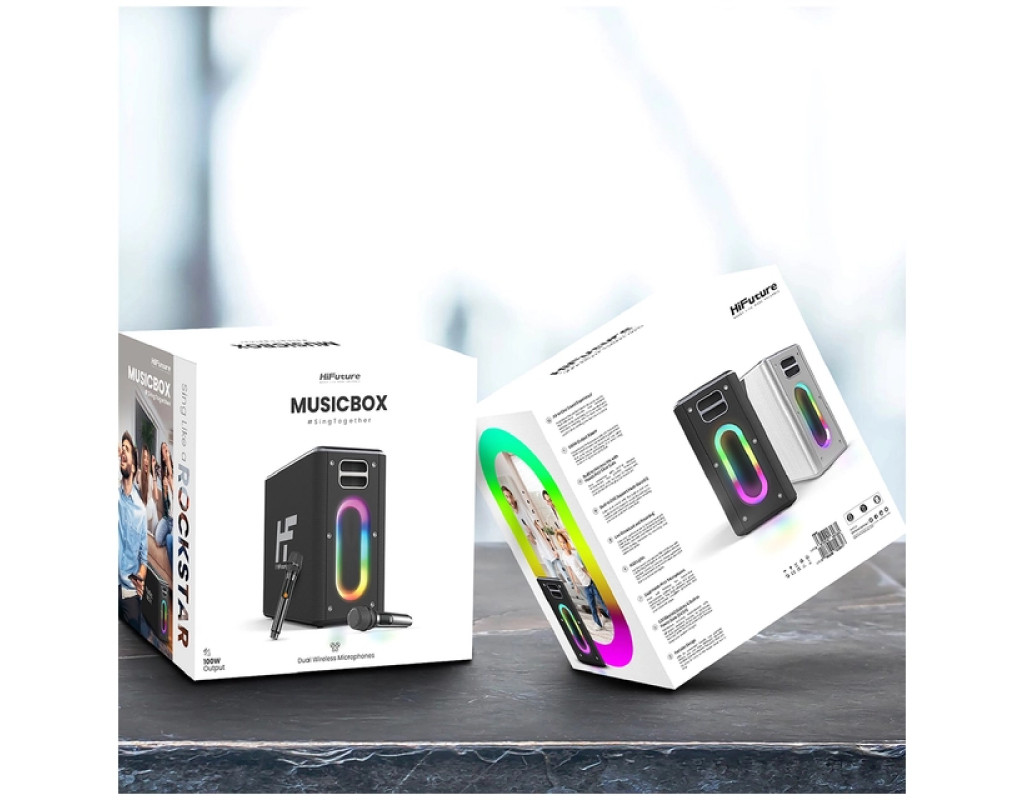 | Акустична система HiFuture MusicBox Black (musicbox.black) - це справжній вибух звуку в стильному, надійному корпусі, що об'єднує найсучасніші технології та чудову якість звучання. Ця портативна колонка ідеально підходить для комфортного прослуховування музики, організації крутих вечірок або ж душею компанії на будь-якому виїзному заході. Головною перевагою MusicBox є потужність у 100 Вт, яка досягається завдяки чотирьом каналам: два сабвуфери потужністю 30 Вт та два твітери по 20 Вт. Це забезпечує об'ємний звук з барвистими басами, що заповнює весь простір навколо. Використовуючи інтерфейс Bluetooth 5.3, колонка стабільно передає музику без затримок, гарантує якісний зв'язок з швидким підключенням до будь-якого сумісного пристрою. Зручність використання вражає. MusicBox має кілька варіантів підключення: від microSD-карти до USB-роз'єму. Окрім цього, розповсюджена функція True Wireless Stereo (TWS) дозволяє підключити дві колонки для створення неймовірного стерео ефекту. Насолоджуватися улюбленими піснями ніколи не було настільки просто! Окремої уваги заслуговує функція караоке з бездротовим мікрофоном, яка надасть ще більше задоволення під час вокальних батлів з друзями. MusicBox також оснащена динамічним RGB-підсвічуванням, що створює атмосферу справжньої дискотеки завдяки безлічі режимів світіння. Для поціновувачів якісного звуку передбачено перемикання між режимами еквалайзера: обирайте баланс або ж потужні баси. Колонка має водонепроникний корпус з тканини, пластику та гуми, що робить її підходящою для використання на природі, а акумулятор ємністю 12000 мАг забезпечує до 15 годин безперервної музики. Модель виготовлена в стильному дизайні з матового ABS-пластику, що гармонійно доповнить будь-який інтер’єр. Компактні розміри та вага 2.547 кг роблять MusicBox мобільним супутником у будь-якій подорожі. Зручний ремінь з кишенями для мікрофонів забезпечує легкість у транспортуванні. Це ідеальний вибір для всіх, хто шукає потужні колонки з якісним звучанням, де б ви не були. Обирайте HiFuture MusicBox Black та відкривайте для себе нові горизонти звуку! |