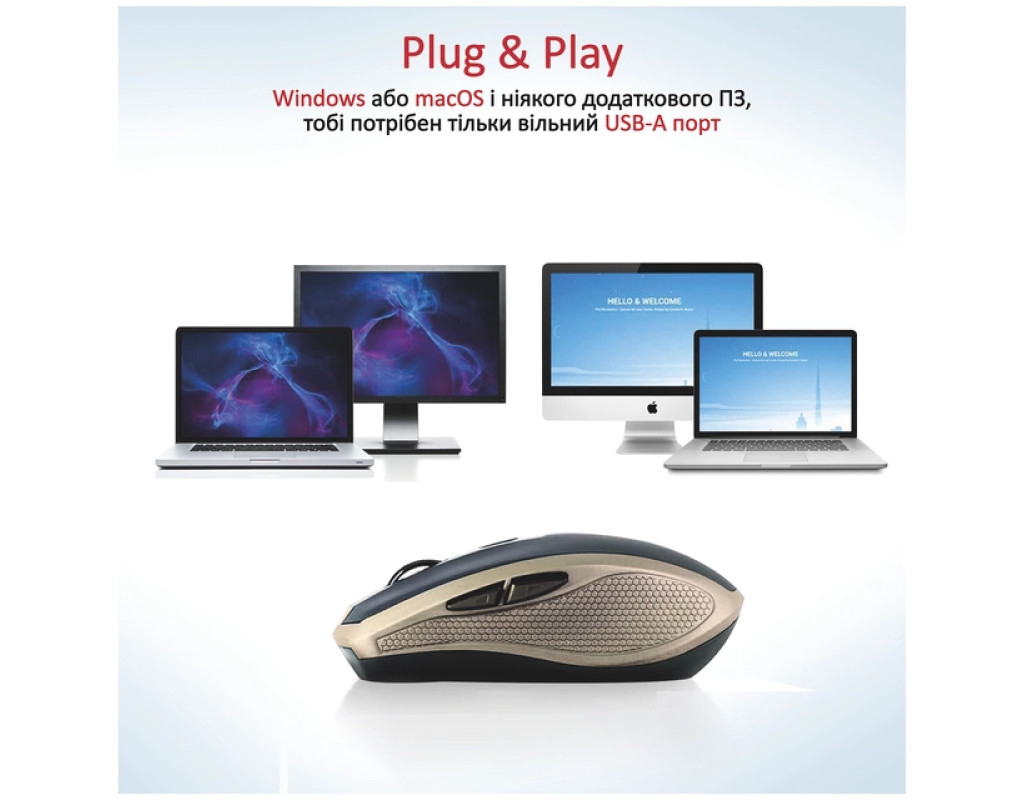 | Мишка Promate Breeze Wireless Gold (breeze.gold) створена для тих, хто цінує тишу та комфорт під час роботи чи навчання. Завдяки спеціальній технології, ця безшумна модель на 90% зменшує звукові ефекти натискання клавіш та прокручування колеса. Це забезпечує спокійне середовище, в якому ви зможете зосередитись на своїх завданнях, не відволікаючи ні себе, ні оточення. Ергономічний дизайн мишки, виконаний з ніжного на дотик софттач пластику, чудово вписується в природну форму долоні, забезпечуючи тривалий комфорт у використанні. Золотий колір корпусу додає елегантності та стилю, роблячи Promate Breeze яскравим акцентом на вашому робочому місці. Ця мишка відрізняється регульованою чутливістю – ви можете легко налаштувати швидкість курсора завдяки наявності чотирьох рівнів чутливості (800, 1000, 1200, 1600 dpi). Така функція дозволяє пристосовувати мишку до різних типів задач, від точного редагування зображень до швидкісного перегляду вебсторінок. Шість функціональних кнопок, включаючи бічні, забезпечують зручність та швидкість навігації за документами і в браузері. Встановлена оптична технологія забезпечує високоточне позиціонування, що особливо важливо при роботі з графікою або витонченими деталями. Енергозберігаючі властивості мишки також заслуговують на увагу. Вона обладнана режимом сну, що значно збільшує термін служби батареї типу 1 х AA. Коли мишка не використовується, вона автоматично переходить у стан низького енергоспоживання, що допомагає зберігати заряд. Бездротовий зв’язок на частоті 2.4 ГГц забезпечує надійне з’єднання з комп’ютером на відстані до 10 метрів. Це робить Promate Breeze ідеальною для роботи з портативними пристроями, такими як ноутбуки. Підключення за допомогою USB адаптера не потребує додаткового програмного забезпечення – достатньо просто підключити наноприймач у вільний USB-A порт, і мишка готова до роботи. Будьте впевнені, що ви можете швидко заховати наноприймач в спеціальне гніздо в корпусі самої мишки, якщо вам потрібно перемістити пристрій. Це зручно для транзитного зберігання і запобігає втраті цінного компоненту. Promate Breeze Wireless Gold – втілення передових технологій в елегантному дизайні, створене для вашого комфорту та зручності. Ян золотистий корпус миттєво підкреслює вишуканість вашого стилю, роблячи цю мишку не лише практичним, а й стильним доповненням до будь-якого ноутбука. Насолоджуйтесь кожною деталлю, працюючи з цим чудовим пристроєм! |