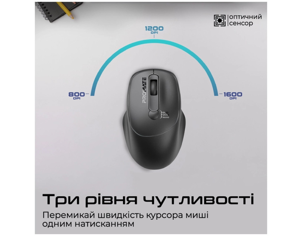 | Мишка Promate UniGlide Wireless Black (uniglide.black) — це поєднання інновацій та стилю, створене для комфортного використання в будь-яких умовах. Завдяки своєму ергономічному симетричному дизайну, вона чудово розміщується як у правій, так і в лівій руці, забезпечуючи впевнене і точне керування. Висока якість матеріалів, з якого виготовлено корпус, дарує приємні тактильні відчуття і гарантує довговічність використання. Інноваційний оптичний сенсор із максимальною роздільною здатністю 1600 dpi дозволяє налаштовувати чутливість відповідно до ваших потреб, забезпечуючи бездоганну точність. Є три рівні чутливості — 800, 1200 та 1600 dpi, які легко перемикати простим натисканням кнопки. Це ідеально підходить як для роботи, так і для розваг, забезпечуючи оптимальний рівень контролю при будь-яких задачах. Завдяки бездротовому підключенню на частоті 2.4 ГГц мишка забезпечує стабільне з'єднання на відстані до 10 метрів, що надає вам вільність дій без обмежень. Компактний USB адаптер легко підключається до вашого ноутбука чи ПК, забезпечуючи моментальний початок роботи без необхідності встановлення додаткового програмного забезпечення. Просто підключіть адаптер в наявний USB-A порт і розпочинайте роботу миттєво. Однією з переваг Promate UniGlide є економія енергії. Мишка споживає мінімум заряду, продовжуючи термін експлуатації 1 батарейки типу AA, яка живить пристрій. Це дозволяє більше не перейматися частою заміною батарей і зосередитися на важливіших завданнях. Додаткові функції, такі як інтуїтивно зрозуміле надточне коліщатко прокрутки, дозволяють швидко і легко орієнтуватися у великих документах і веб-сторінках. Надійні клавіші з запасом міцності в 3 мільйони натискань видають приємне клацання, що підкреслює високу якість та стабільність пристрою. Promate UniGlide — це не просто мишка, це надійний партнер, який завжди під рукою, де б ви не знаходились. Проста, але стильна, в чорному кольорі, вона гармонійно вписується в будь-який робочий простір, надаючи йому сучасного вигляду. Вона підходить для різних операційних систем, таких як Windows і macOS, що робить її універсальним вибором для кожного користувача. |