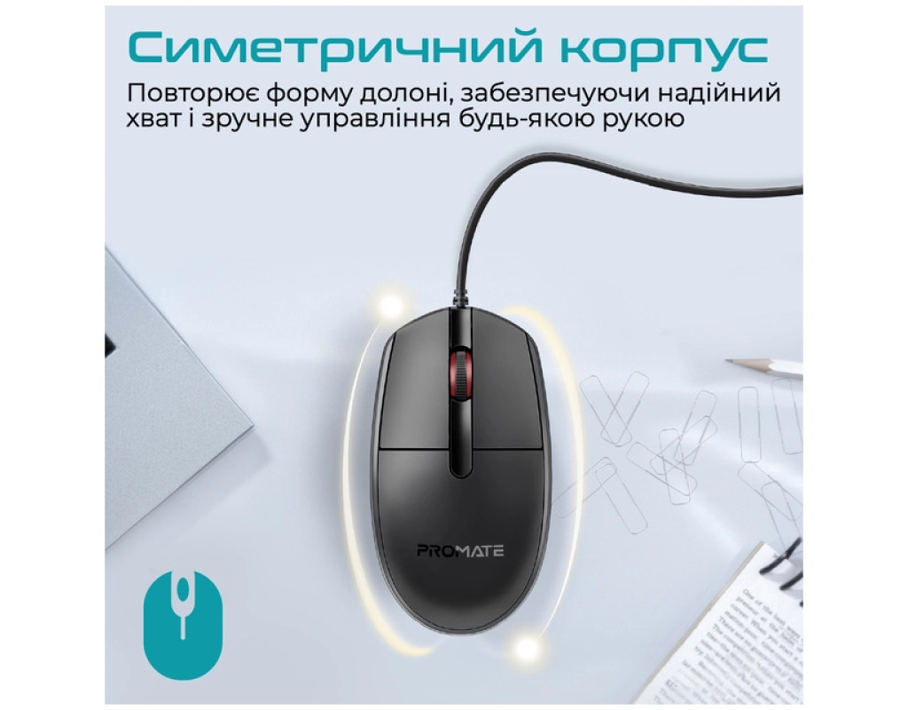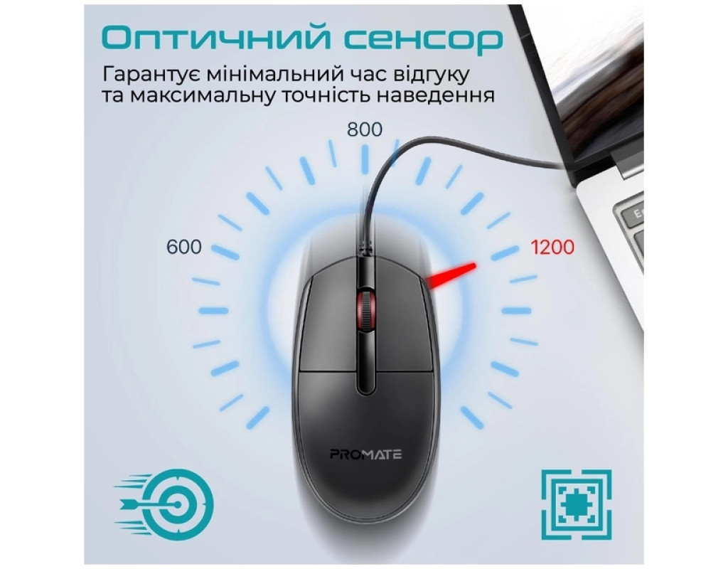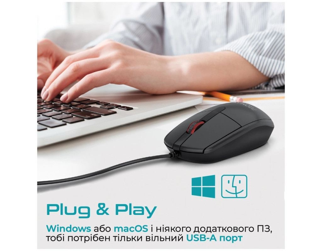 | Мишка Promate CM-1200 USB Black (cm-1200.black) - це чудовий вибір для тих, хто цінує надійність та комфорт у повсякденній роботі за комп’ютером. Ця класична дротова миша була спеціально розроблена для забезпечення високої точності та зручності під час використання, що особливо важливо для офісної роботи, навчання або розваг. Оптичний сенсор з роздільною здатністю до 1200 dpi гарантує високу точність наведення та швидкість реакції. Це дозволяє без зусиль працювати з текстами, графікою, переглядати веб-сторінки та управляти будь-яким програмним забезпеченням. Симетричний дизайн миші ідеально підходить для використання як правшиною, так і ліворукими користувачами, що робить її відмінним варіантом для спільного використання в офісі. Корпус з якісного ABS-пластику надійний та приємний на дотик, забезпечує комфортну роботу протягом багатьох годин. Міцність миші підтверджена ресурсом в 6 мільйонів натискань кнопок, що є беззаперечною перевагою для інтенсивного використання. Мишка має три зручні кнопки, які забезпечують простоту та швидкість управління. Мишка оснащена USB кабелем довжиною 1.5 метра, що дозволяє легко підключити її до комп’ютера, розташованого на будь-якій відстані. Кабель в ПВХ оплітці з протекторами в місцях з'єднань стійкий до згинань і поломок, що забезпечує довговічність і надійність у користуванні. Завдяки технології Plug & Play ви можете миттєво розпочати роботу без необхідності встановлення додаткового програмного забезпечення; мишка сумісна з Windows та macOS. Чорний колір мишки надає їй стильний та стриманий вигляд, який підійде до будь-якої обстановки, будь то домашній офіс або робоче місце в компанії. Мишка Promate CM-1200 USB Black (cm-1200.black) - це відмінне поєднання якості, зручності та доступної ціни, які роблять її одним з кращих варіантів для будь-якого користувача, що шукає просте, але ефективне рішення для своєї щоденної роботи з комп'ютером. |