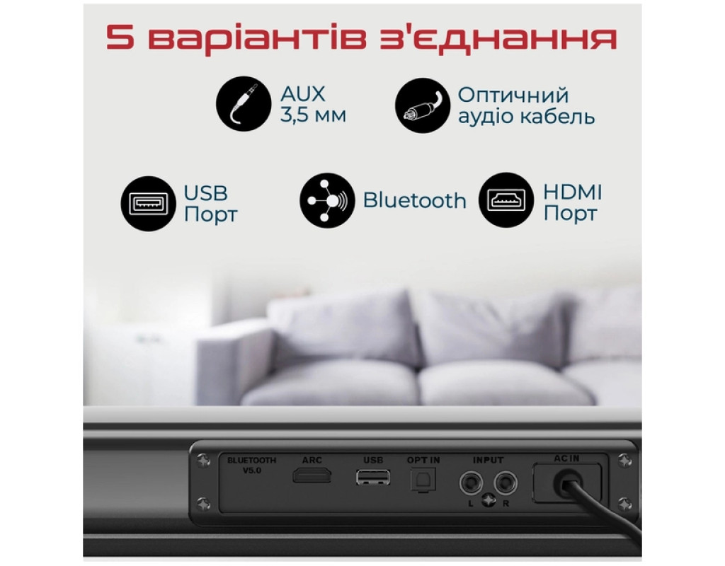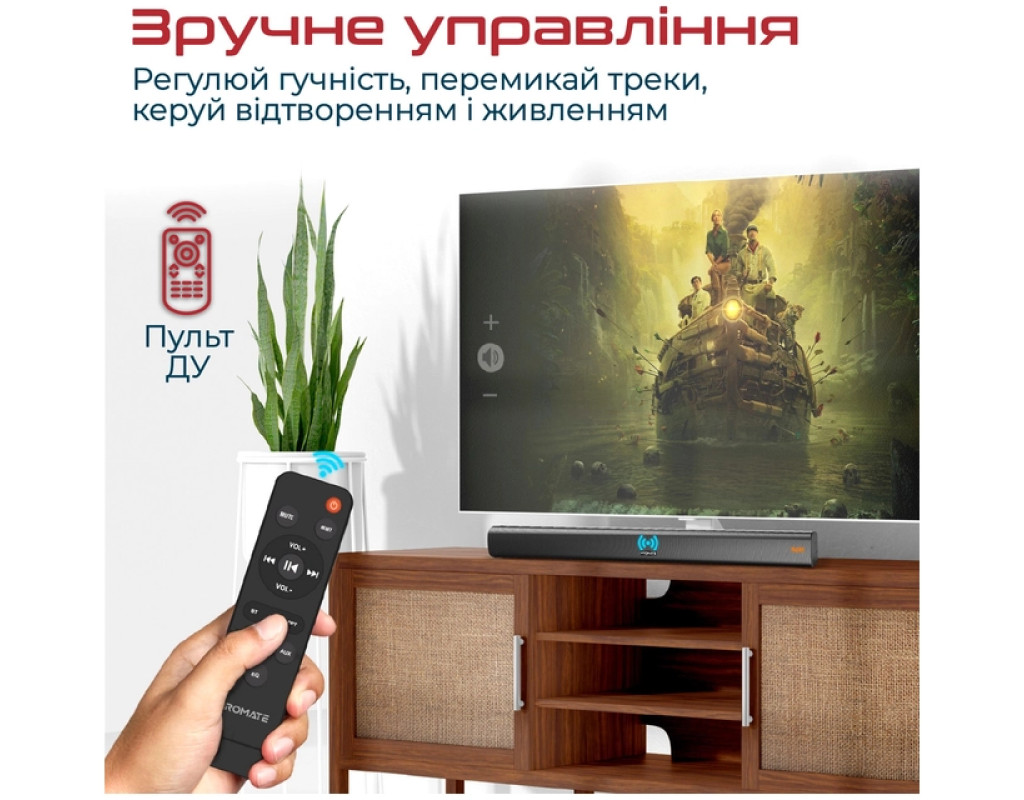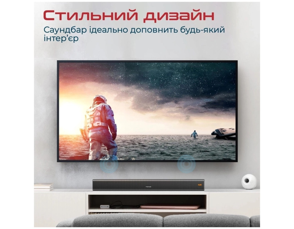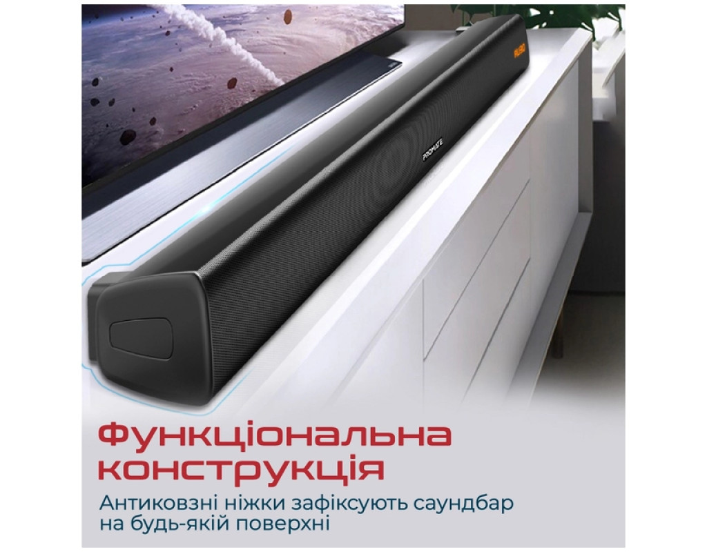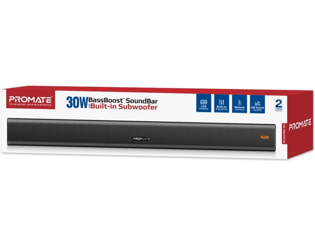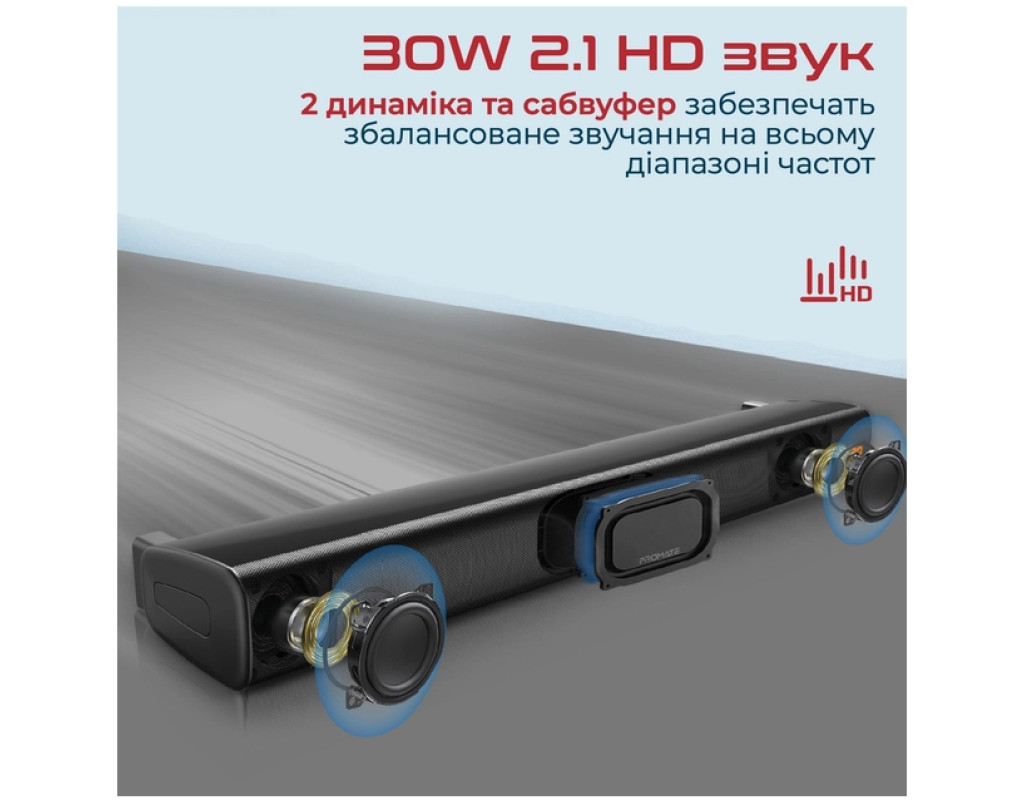 | Акустична система Promate StreamBar-30 Black (streambar-30.black) — це поєднання елегантного дизайну та неперевершеної якості звуку, яке перетворить ваше приміщення на справжній центр розваг. Завдяки технології BassBoost™, StreamBar-30 забезпечує потужний об'ємний звук загальною потужністю 30 Вт, що в поєднанні з підсиленими басами створює незабутній аудіовраження. Незалежно від того, чи ви переглядаєте фільм, граєте в ігри або слухаєте музику, ви почуватиметеся, наче в кінотеатрі чи на стадіоні. StreamBar-30 оснащений 2.1-канальною системою із двома динаміками та сабвуфером, що забезпечують збалансоване звучання на всьому діапазоні частот. Ця акустична система підтримує Bluetooth 5.0, що гарантує стабільний та якісний сигнал без переривань і затримок під час трансляції потокового відео. Ви можете легко підключити саундбар до телевізора, ПК, ноутбука, ігрової консолі або смартфона за допомогою різноманітних інтерфейсів Bluetooth, 3.5 мм AUX, HDMI та оптичного аудіо кабелю. Для більшої зручності, система також передбачає відтворення музики з USB-флешки. Однією з переваг StreamBar-30 є наявність еквалайзера з декількома режимами — музика, кіно, ігри, що дозволяє вибирати оптимальний режим звучання відповідно до ваших потреб. Підсилювач басів додає об'ємності та насиченості звучанню, що робить кожну аудіокомпозицію ще більш виразною. Зовнішній вигляд саундбару вразить будь-якого поціновувача сучасного дизайну. Геометрично правильні форми і поєднання металевих та пластикових елементів не тільки виділяють його стиль, але й доповнюють інтер'єр вашої оселі чи офісу. Завдяки антиковзним ніжкам, акустична система надійно фіксується на поличці, а вбудовані кронштейни забезпечують зручність кріплення на стіні. Крім естетики та звуку, Promate StreamBar-30 забезпечує зручність у користуванні, оснащений бездротовим пультом дистанційного управління, що дозволяє легко регулювати гучність, перемикати треки і керувати відтворенням. Це рішення для тих, хто цінує комфорт та якість у всьому. Живлення саундбару здійснюється від мережі, а матеріал корпусу із пластику гарантує легкість, що робить його вагу всього 1.5 кг. Завдяки продуманій конструкції та інноваційним функціям, акустична система Promate StreamBar-30 Black стане невід’ємною частиною вашого домашнього аудіо-комплексу, радуючи вас кожен день якісним та насиченим звучанням. |