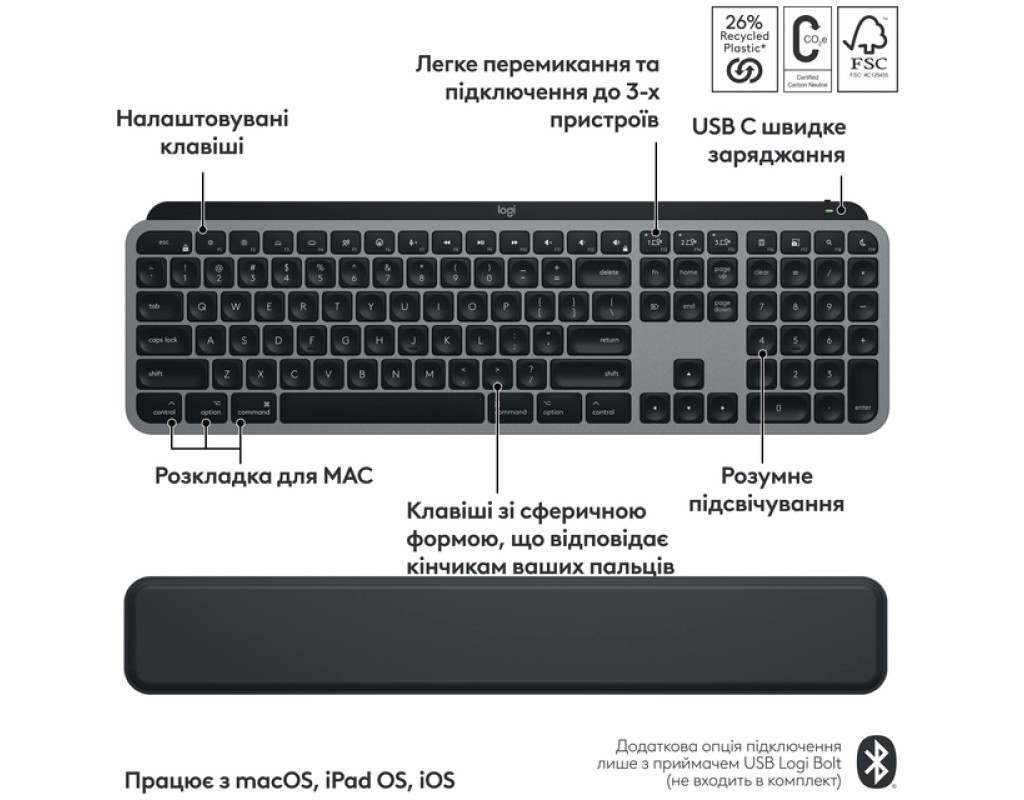 Комплект Logitech MX Keys S Combo для MAC Bluetooth/Wireles UA Space Grey (920-012845)