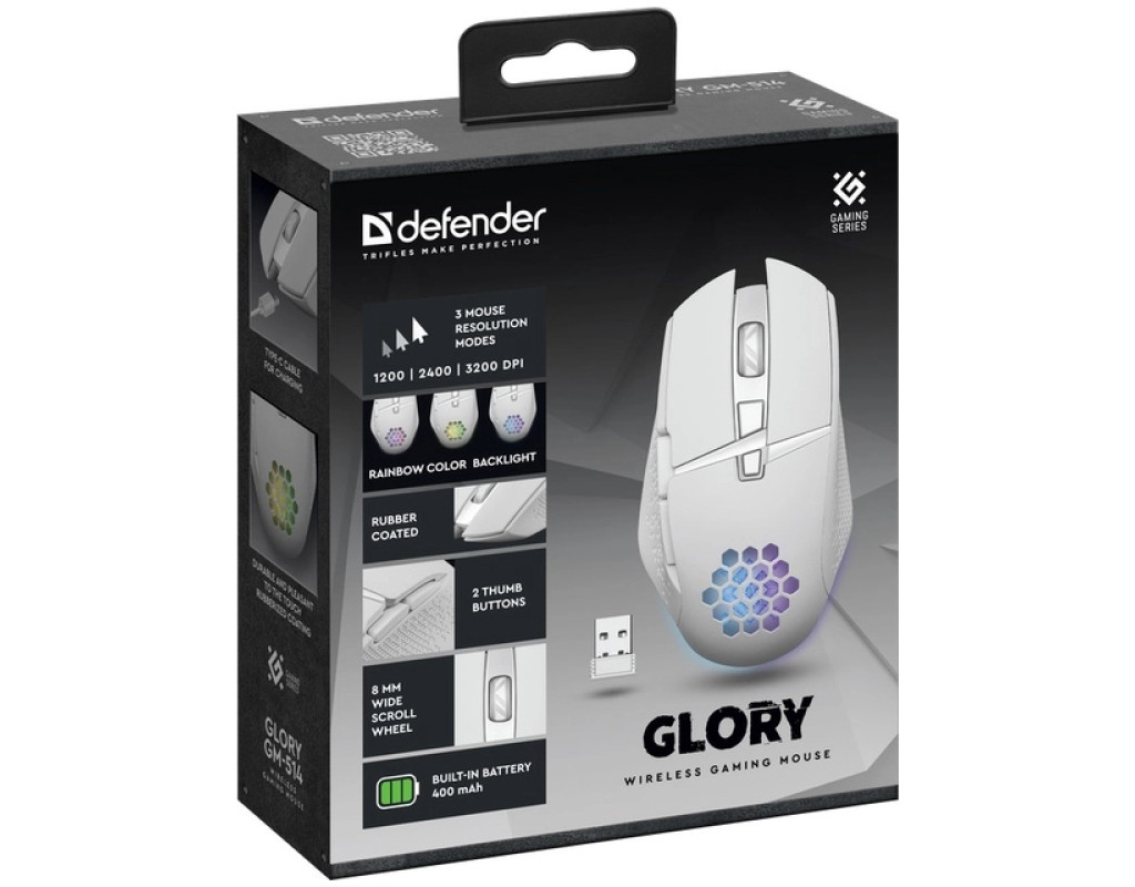 | Defender Glory GM-514 LED Wireless White (52513) – це бездротова мишка, що поєднує в собі стильний дизайн, інноваційні технології та високу функціональність, щоб забезпечити максимальний комфорт у вашій щоденній роботі або ігрових сесіях. Завдяки своєму оригінальному дизайну перфорованого корпусу "соти", вона виглядає не тільки естетично привабливо, але й дозволяє зменшити вагу для швидкої і точної маневреності. Однією з ключових переваг цієї миші є її бездротове підключення з інтерфейсом USB адаптера 2.4 ГГц. Це рішення позбавляє вас від необхідності мати справу з незручними кабелями, зберігаючи при цьому стабільність з’єднання, необхідну для продуктивної роботи чи перемог у ігрових битвах. Мишка оснащена високочутливим оптичним датчиком, максимальна роздільна здатність якого становить 3200 dpi. Завдяки цьому мишка адаптується до різних стилів гри, надаючи можливість вибору з трьох режимів dpi: 1200, 2400 або 3200, що дає точний контроль у кожній ситуації. Особливості, які роблять Defender Glory GM-514 дійсно унікальною, включають програмовані кнопки, яких на мишці налічується 7, що дозволяє створювати макроси та персоналізувати ваше користувацьке середовище через програмне забезпечення Defender Game Center. Це ПО відкриває нові горизонти для налаштувань, дозволяючи емулювати клавіші клавіатури і створювати швидкі дії в іграх чи роботі. Підсвічування миші – ще одна деталь, яка допомагає виділитися у темряві. Переливаюче LED підсвічування можна налаштувати або повністю вимкнути для економії заряду акумулятора, що особливо зручно, коли яскравість не є пріоритетною. Завдяки вбудованому акумулятору на 400 мА*год, мишка Defender Glory GM-514 забезпечує тривалу роботу без необхідності частого заряджання. Коли ж це необхідно, використовуйте комплектний USB кабель, щоб швидко і зручно надати миші новий заряд енергії. Ця мишка розроблена з урахуванням потреб користувачів з великою долонею, забезпечуючи комфортне розташування руки і мінімізуючи втому від довготривалого користування. Її ергономічний дизайн підходить для тривалих ігрових сесій і офісної роботи, роблячи її всепогодним рішенням для будь-яких завдань. Завдяки білому кольору, мишка прекрасно поєднується з різними стилями робочого простору, додаючи лаконічності та естетики. Defender Glory GM-514 LED Wireless White (52513) – це ваша можливість поглянути на безпровідні технології з нової сторони, оцінити ергономічність та отримати вигоду від сучасних технологій у розкішній оболонці. |