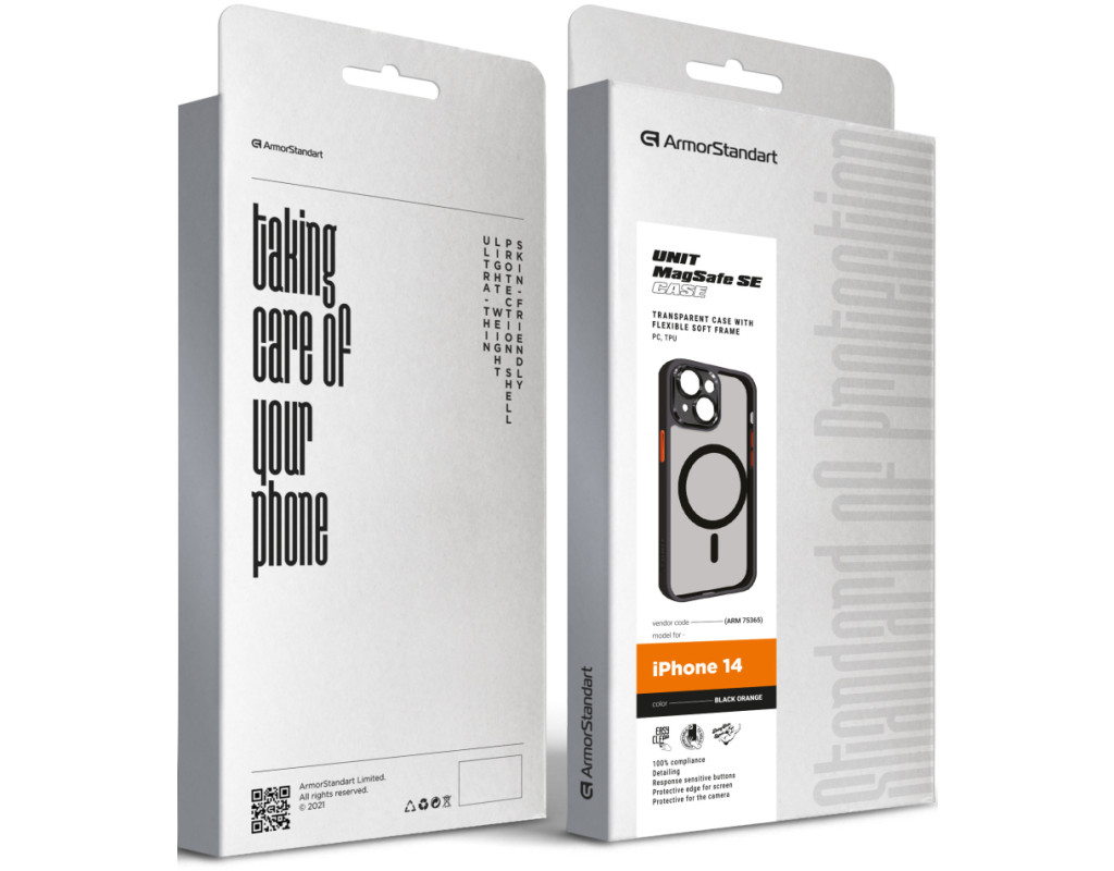 Чохол до мобільного телефона Armorstandart Unit MagSafe SE Apple iPhone 14 Black Orange (ARM75365)