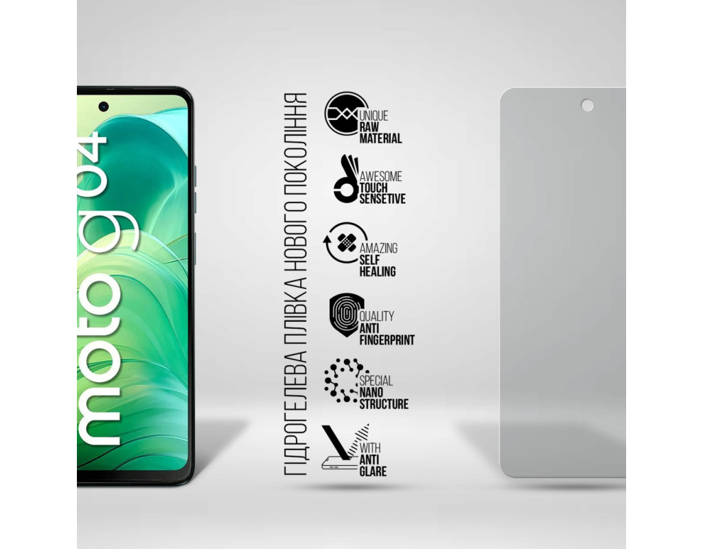 Призначення - для телефону, Вид покриття - матове, захисний, гідрогелева, Сумісність з моделями - Motorola G04, Кількість в упаковці - 1 шт
