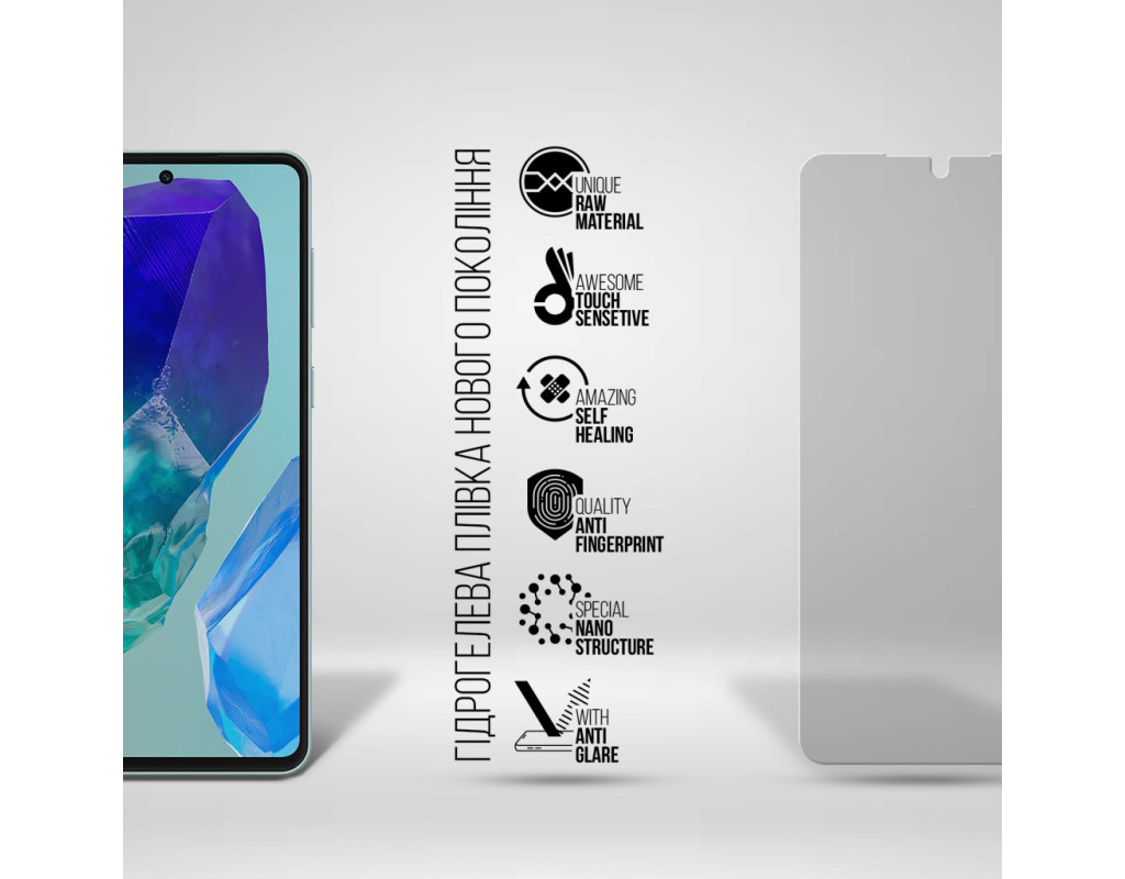 Призначення - для телефону, Вид покриття - матове, захисний, гідрогелева, Сумісність з моделями - Samsung Galaxy M55, Кількість в упаковці - 1 шт