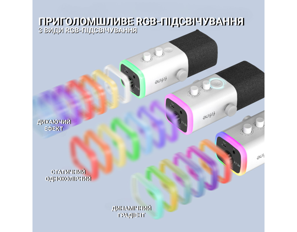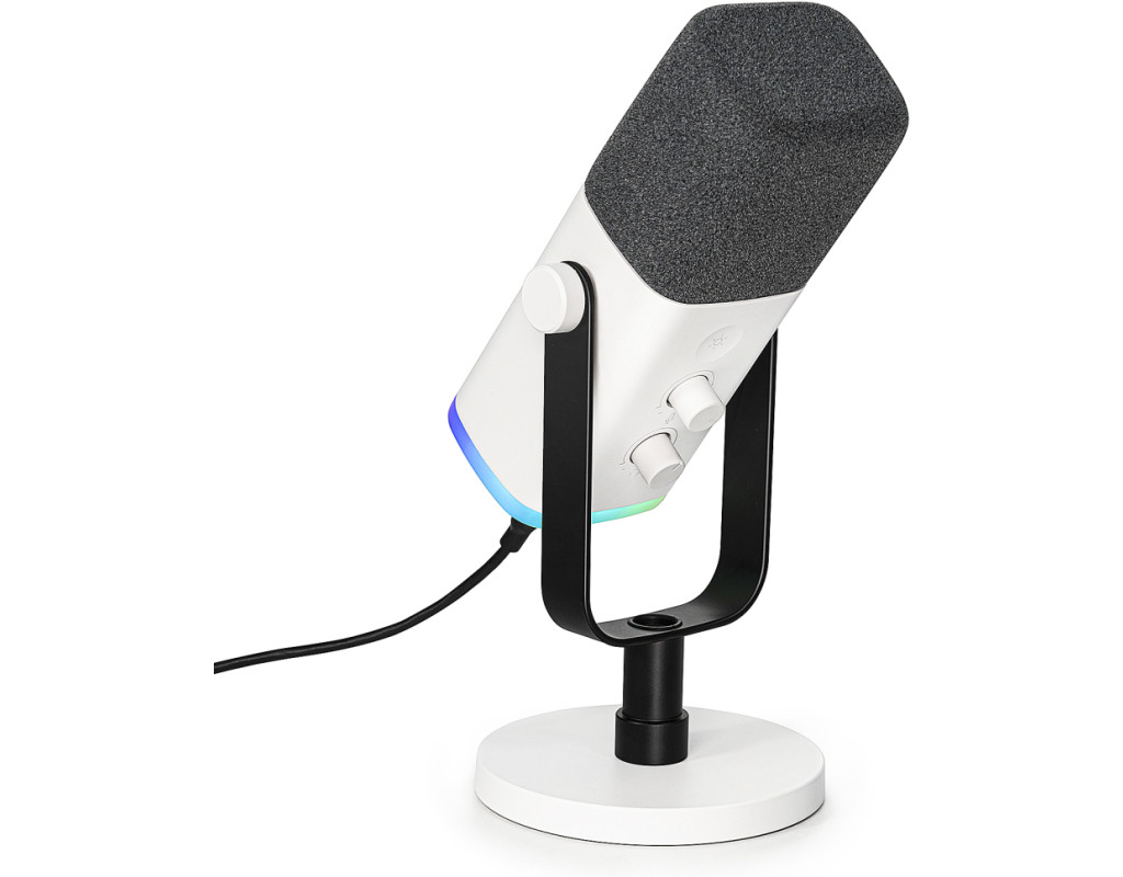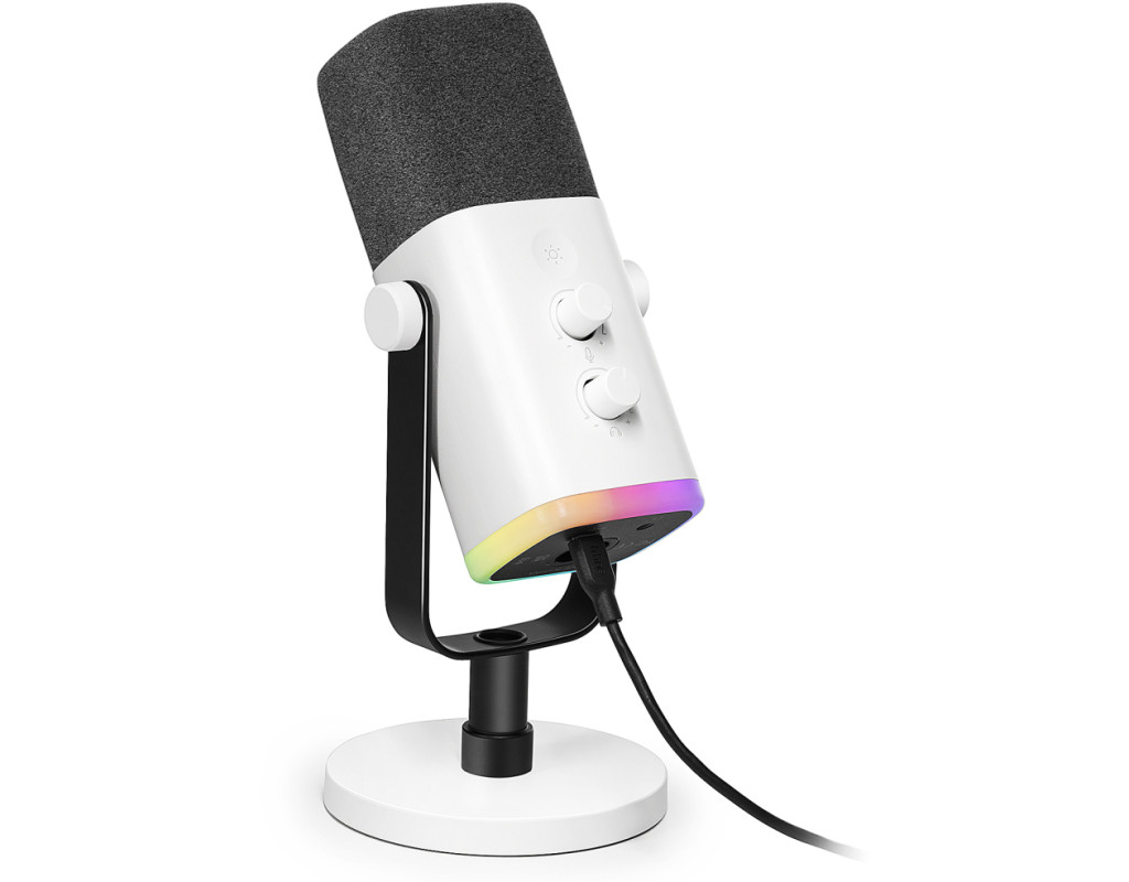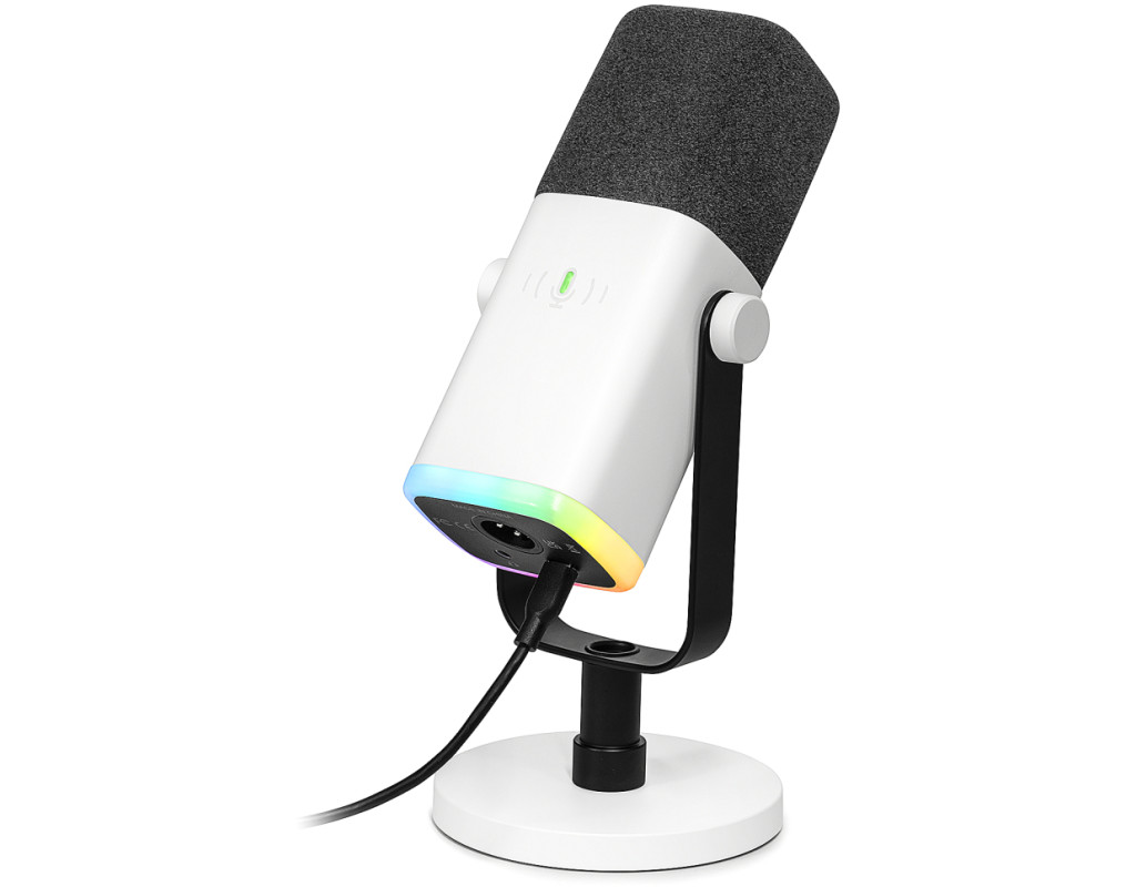 Fifine Ampligame AM8 представляє собою динамічний мікрофон з проводовим USB і XLR підключенням, який відмінно підійде для запису підкастів, стримів, озвучки, проведення трансляцій. Він має кардіоїдний капсуль, який забезпечує високу чіткість та деталізацію мови. У комплекті постачається стійка для зручного розміщення мікрофона на столі. Для моніторингу голосу в реальному часі є вихід на навушники. RGB-підсвічування на основі мікрофона дозволить створити унікальну атмосферу під час запису. |