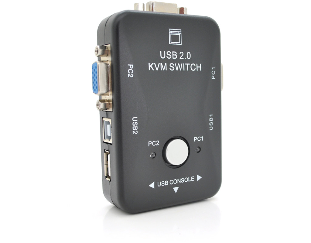 | '2-портовий KVM-перемикач з USB' - це пристрій, який дозволяє керувати двома комп`ютерами за допомогою однієї клавіатури, відеомонітора та миші (KVM), використовуючи підключення USB. За допомогою цього пристрою користувач може легко перемикатися між різними комп`ютерами, необхідними для виконання різних завдань за допомогою загальних периферійних пристроїв. |