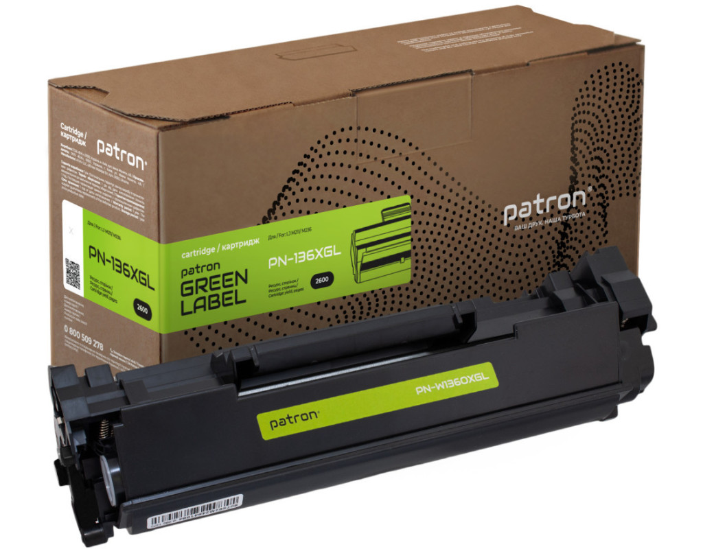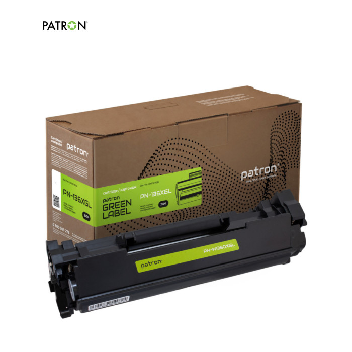 | Картридж сумісний HP 136X (W1360X) Green Label Patron (PN-136XGL) оптимальне рішення для лазерних принтерів та БФП. Основні властивості Детальна інформація: Що таке сумісний картридж? Кожен користувач друкувальної техніки стикається з питанням купівлі нового картриджа і знаходить досить велику кількість пропозицій. Як зробити правильний вибір? Розглянемо основні варіанти: Виробники друкувальних пристроїв (т.з. OEM виробники) наполягають на використанні оригінальних картриджів. Їх основний недолік - висока вартість. Сумісні картриджі виробляються різними компаніями - сторонніми виробниками. Вони дають можливість істотно заощадити на друці, проте питання оптимального балансу між якістю друку, ціною, гарантією та ресурсом картриджа залишається вибором Покупця. Картридж сумісний HP 136X (W1360X) Green Label Patron (PN-136XGL) гарантія Ми гарантуємо 12 місяців справної роботи картриджа та проведемо заміну продукції з виробничим дефектом. Якість друку Картриджі серії Patron Green Label виготовляються з використанням нових корпусів та повністю придатні для повторної заправки. Основна відміна серії Patron Green Label від картриджів низького цінового сегменту – якість комплектуючих, що забезпечує високу оптичну щільність друку, а також ресурс, аналогічний оригінальному картриджу. При виробництві картриджів Patron Green Label виробник дотримується загального стандарту ISO 9001:2015 і спеціальні стандарти, що використовуються в індустрії друку - ISO 19752:2017 для монохромних картриджів ISO 19798:2017 - для кольорових картриджів, а також STMC стандарт для контролю ресурсу. Захист навколишнього середовища Виробництво картриджів Patron Green Label відбувається з виконанням вимог міжнародного стандарту по захисту навколишнього середовища - ISO 14001:2015. Залишки матеріалів і комплектуючих, що використовуються для виробництва картриджів Patron Green Label, передаються на утилізацію відповідно Закону України "Про відходи". Для виробництва картонної упаковки ми використовуємо перероблені матеріали з нанесенням мінімальної кількості фарби. А конструкція коробки для картриджа дозволяє кілька разів відкривати і закривати його на "замок" для транспортування в сервісний центр. Ми закликаємо до нанесення мінімального впливу на довкілля. Тому заправляйте і відновлюйте картриджі Patron Green Label. Картридж сумісний HP 136X (W1360X) Green Label Patron (PN-136XGL) економія на офісному друці Вартість картриджів серії Patron Green Label в середньому на 70-80% нижче оригінальних витратних матеріалів. Оптимальне співвідношення ціна-якість робить дану продукцію хорошим вибором для Клієнтів, що бажають заощадити на друці і не прогадати з якістю. Зовнішній вигляд Ми потурбувалися про те, щоб упаковка картриджа була не лише екологічною, функціональною, мала мінімально можливі фізичні розміри, але і містила усю необхідну інформацію. На зеленій етикетці знаходиться інформація про картридж, його сумісність з друкувальними пристроями, номер партії, дата виготовлення, контакти виробника, а також номер телефону безкоштовної гарячої лінії для українських споживачів. Сподіваємось, що наведена інформація дозволить Вам зробити правильний вибір. Ваш друк – наша турбота! Оптимальний варіант для користувача, що хоче заощадити;При виробництві картриджа використовується новий корпус;Гарантований ресурс;Економія 70-80% у порівнянні з оригінальними витратними матеріалами;Виробник дод
