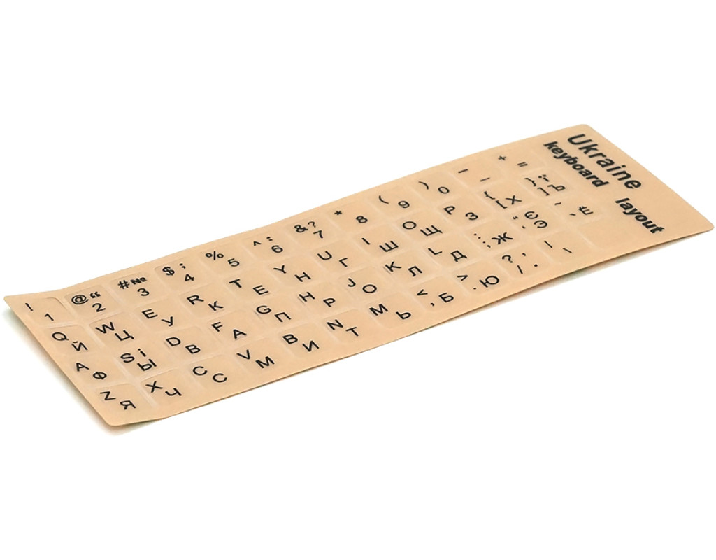 Прозорі наклейки, матові на клавіатуру з чорними Англ. літерами, Рус.літерами та Укр. літерами, Q100