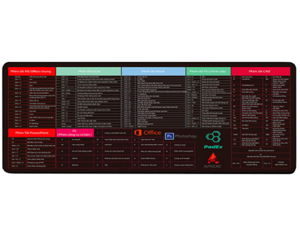Тканинний килимок чорного кольору з бічною прошивкою і товщиною 2 мм, призначений для використання разом з Shortcut keys-1. Розміри килимка становлять 300*700 мм. Комбінація в`єтнамською мовою |