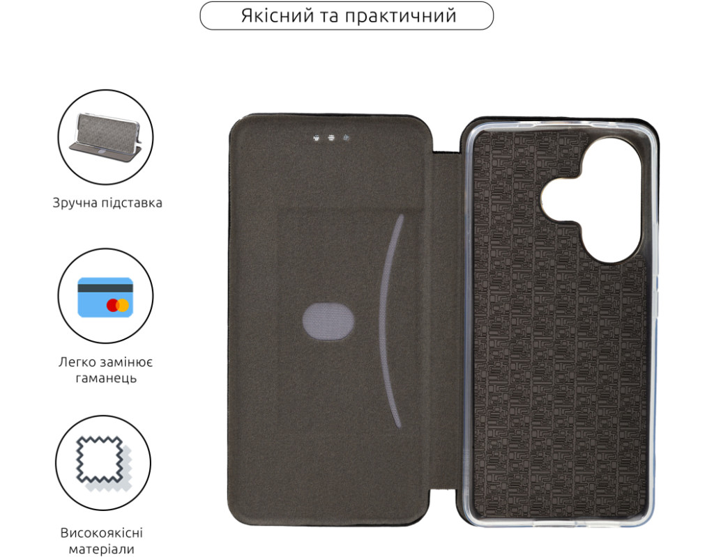 - Елегантний дизайн: Чорний колір надає чохлу класичний і універсальний вигляд, що ідеально підходить як для повсякденного використання, так і для ділових зустрічей. Мінімалістичний дизайн з акцентом на функціональність робить цей чохол стильним доповненням до вашого смартфона.