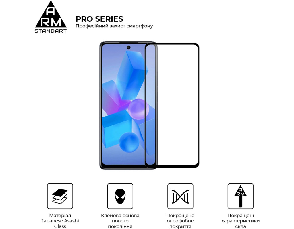 Захисне скло Armorstandart Pro Series - це абсолютно новий рівень захисту дисплея смартфона. У виробництві використовується матеріал Japenese Asashi Glass, який проходить загартування впродовж 4 годин. Це забезпечує ідеальну прозорість захисного покриття без спотворень зображення, а також потужний захист від тріщин і подряпин. Скло ніяк не впливає на чуйність тачскрина. У ньому міститься спеціальний матеріал, що перешкоджає появі відколів. Верхня частина скла містить покращене олеофобне й гідрофобне покриття. Під час використання скла це забезпечує природні тактильні відчуття - пальці легко ковзають по поверхні. Водночас зображення відбивається з автентичною яскравістю й чіткістю без спотворень. Задня частина по всій площі покрита клейовою основою нового покоління. Завдяки цьому досягається повний брак пухирців і можливість переклеювання скла в разі первісного нерівного встановлення. Захисне скло Armorstandart Pro Series має оптимальні габарити та товщину на 0,3 мм. Передбачено вирізи під усі датчики, камери та роз'єми. До комплекту входить усе потрібне для швидкого та комфортного встановлення. Особливості: