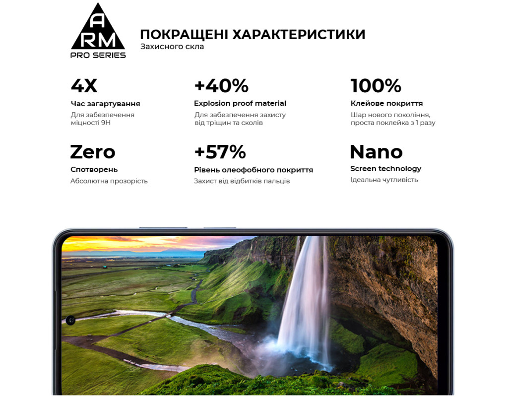 Захисне скло Armorstandart Pro Series - це абсолютно новий рівень захисту дисплея смартфона. У виробництві використовується матеріал Japenese Asashi Glass, який проходить загартування впродовж 4 годин. Це забезпечує ідеальну прозорість захисного покриття без спотворень зображення, а також потужний захист від тріщин і подряпин. Скло ніяк не впливає на чуйність тачскрина. У ньому міститься спеціальний матеріал, що перешкоджає появі відколів. Верхня частина скла містить покращене олеофобне й гідрофобне покриття. Під час використання скла це забезпечує природні тактильні відчуття - пальці легко ковзають по поверхні. Водночас зображення відбивається з автентичною яскравістю й чіткістю без спотворень. Задня частина по всій площі покрита клейовою основою нового покоління. Завдяки цьому досягається повний брак пухирців і можливість переклеювання скла в разі первісного нерівного встановлення. Захисне скло Armorstandart Pro Series має оптимальні габарити та товщину на 0,3 мм. Передбачено вирізи під усі датчики, камери та роз'єми. До комплекту входить усе потрібне для швидкого та комфортного встановлення. Особливості: