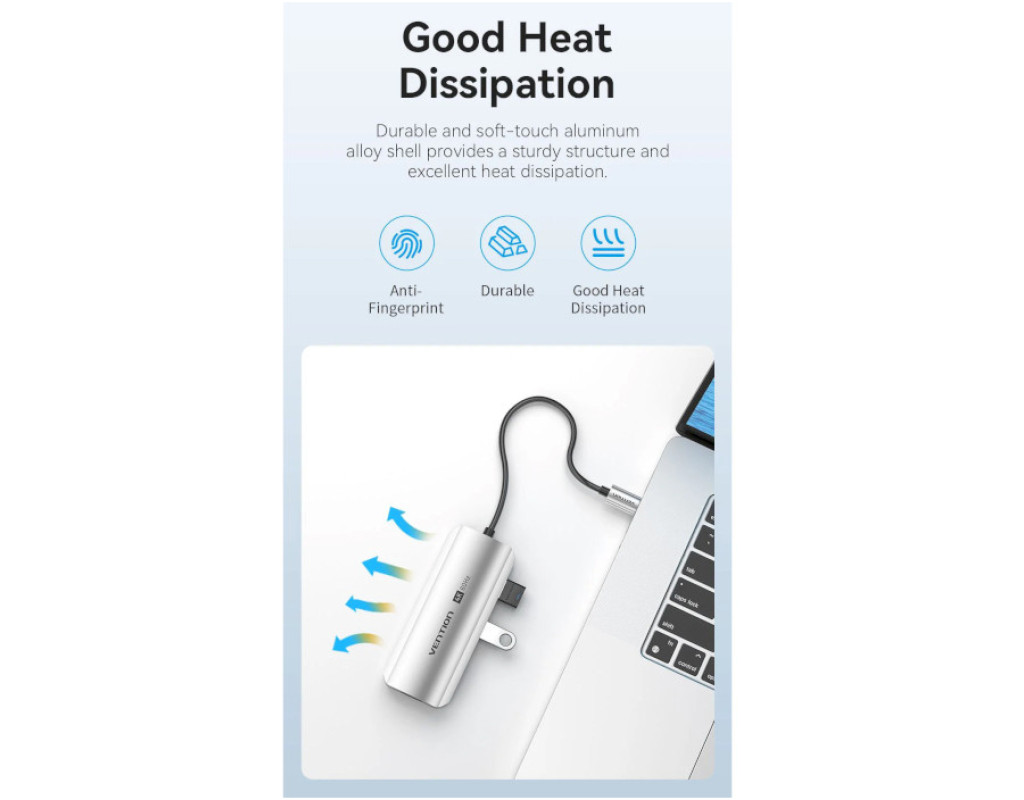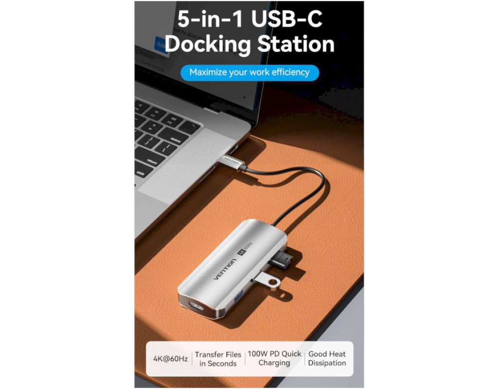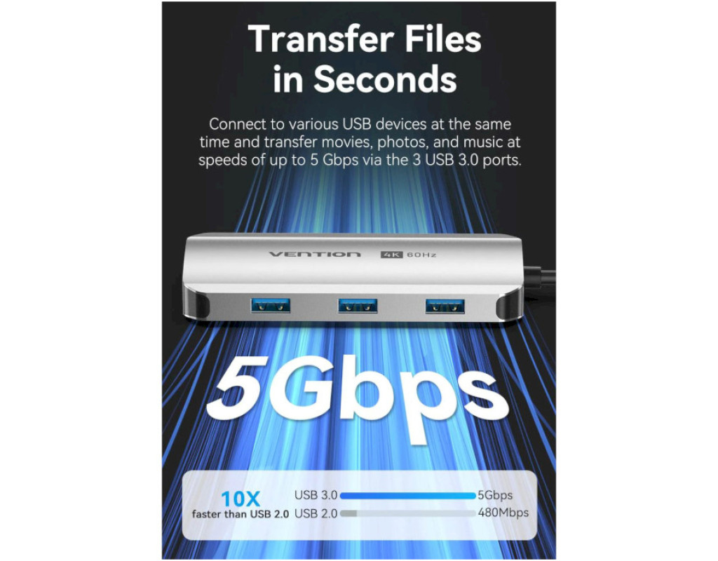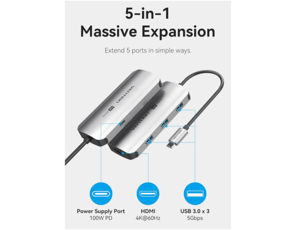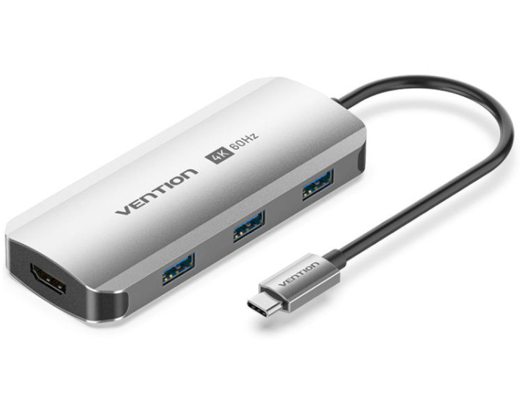 Концентратор VENTION USB 3.1 Type-C to HDMI 4K60Hz/USB 3.0x3/PD 100W 5-in-1 (TQDHB)