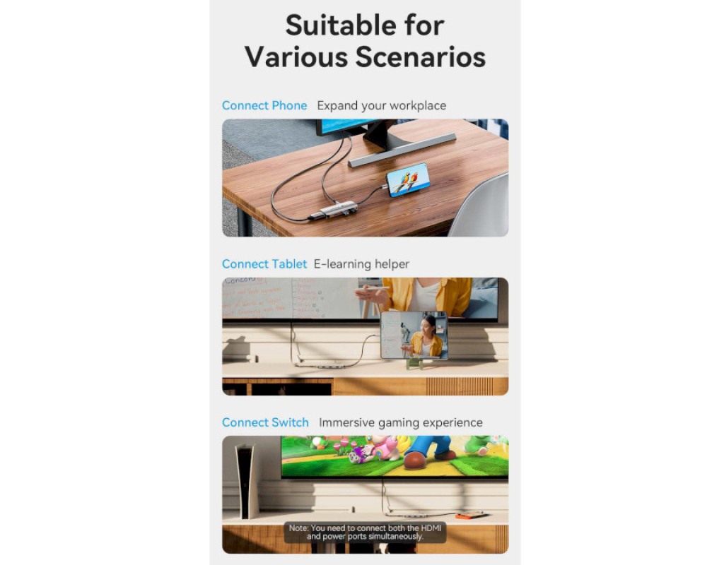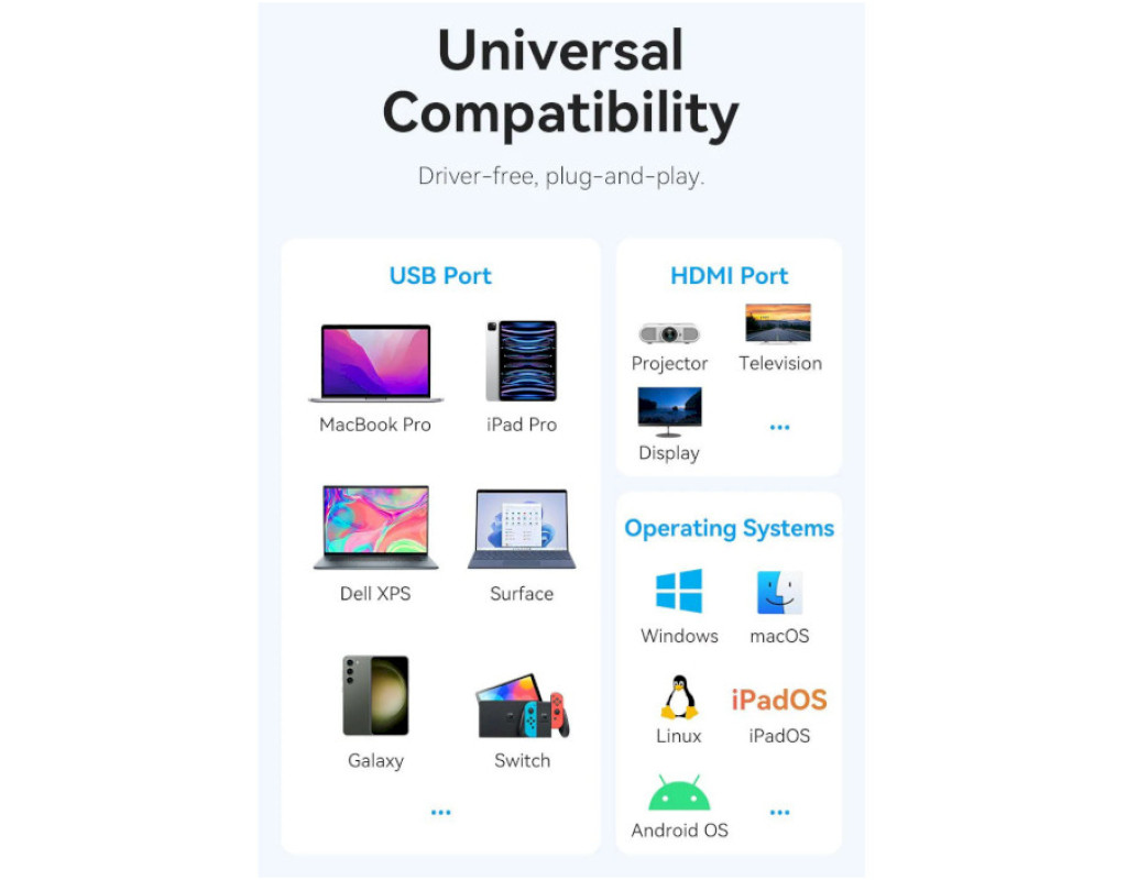 Тип - зовнішній, Інтерфейс підключення - USB Type-C, Вихідні роз'єми - 1 x HDMI, 3 х USB 3.0, 1 x USB Type-C PD, Також шукають - для MacBook