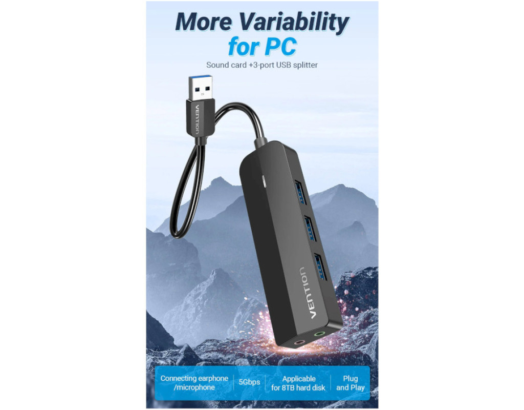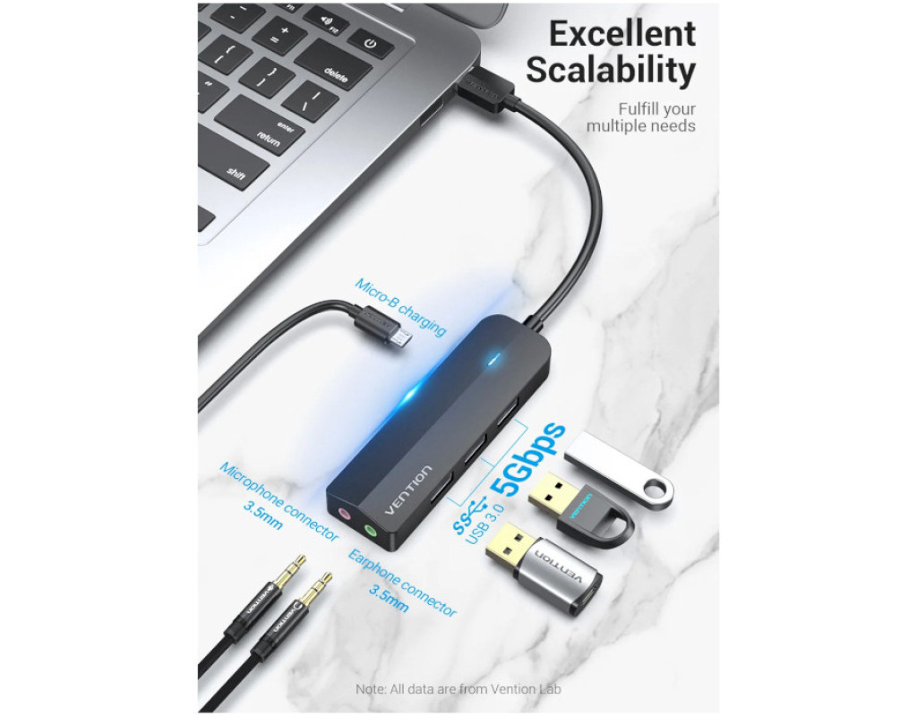 Концентратор VENTION USB 3.0 to 3хUSB 3.0/2хTRS Audio/USB Micro 1.0m (CHIBF)