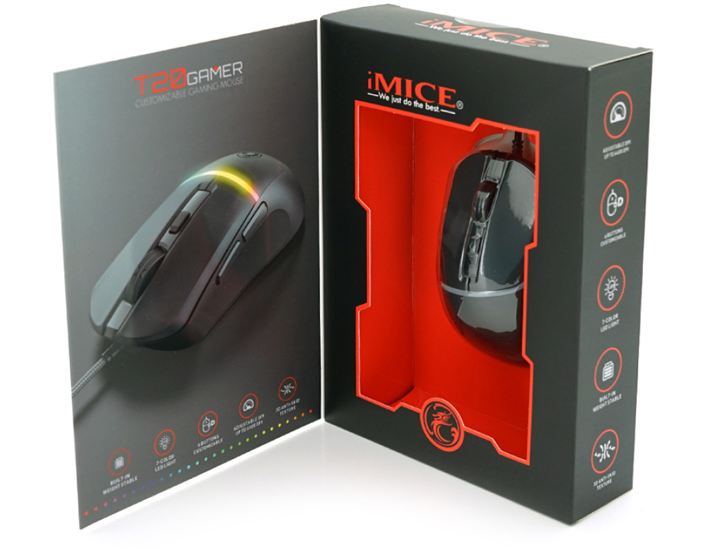 | Опис : Дротова миша iMICE T20 з 6 кнопками та підсвічуванням Led Lighting, з роздільною здатністю 1000 / 1600 / 3200 / 6400 DPI. Сумісна з операційними системами Windows XP / Vista / Win7 / 8 / 10 та Mac OS X. Колір чорний, поставляється в кольоровій коробці. Характеристики : - Модель: Миша провідна iMICE T20 - Кількість кнопок: 6 - Роздільна здатність: 1000 / 1600 / 3200 / 6400 DPI - Підсвічування: Led Lighting - Довжина кабелю: 1,5м - Сумісність: Windows XP / Vista / Win7 / 8 / 10, Mac OS X - Колір чорний - Упаковка: COLOR BOX - Код товару: Q40 |