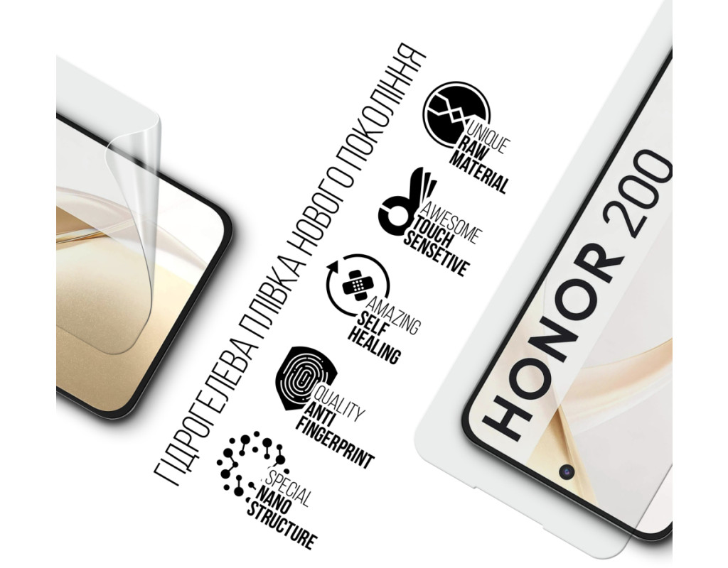 Призначення - для телефону, Вид покриття - захисний, гідрогелева, Сумісність з моделями - Honor 200, Кількість в упаковці - 1 шт