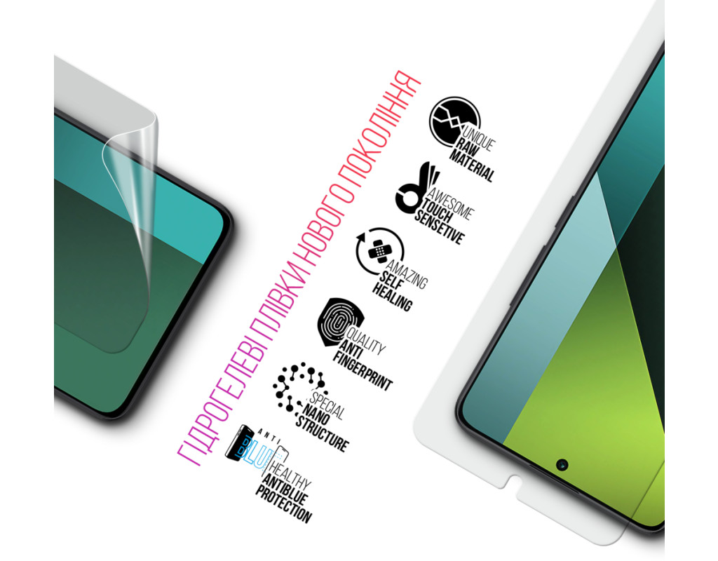Призначення - для телефону, Вид покриття - захисний, гідрогелева, Сумісність з моделями - Xiaomi Redmi Note 13 Pro+ 5G, Кількість в упаковці - 2 шт
