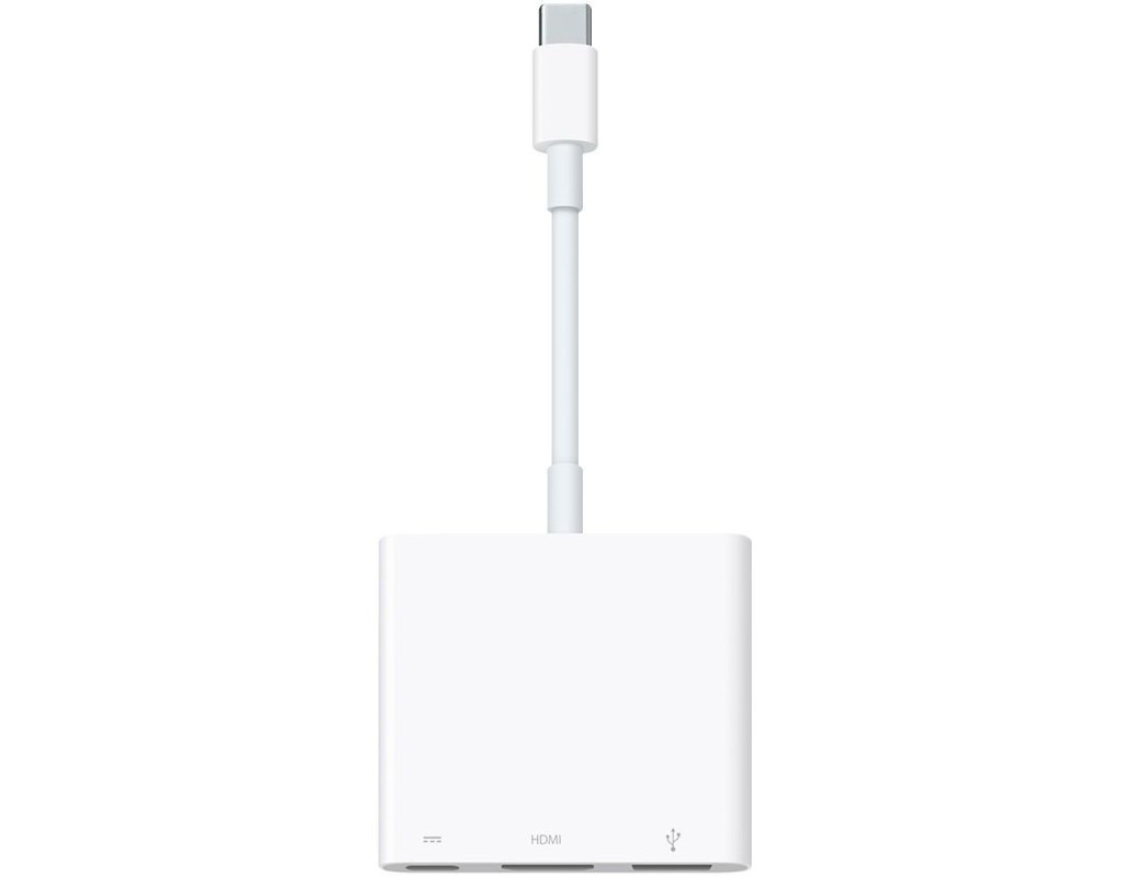 Багатопортовий цифровий аудіо-відео адаптер USB-C дає змогу під'єднати комп'ютер Mac, iPad або iPhone з роз'ємом USB-C до дисплея HDMI, а також підключити стандартний USB-пристрій і зарядний кабель USB-C. Цей адаптер дає змогу дзеркально відобразити комп'ютер Mac, iPad або iPhone з інтерфейсом USB-C на телевізорі або дисплеї з інтерфейсом HDMI. |