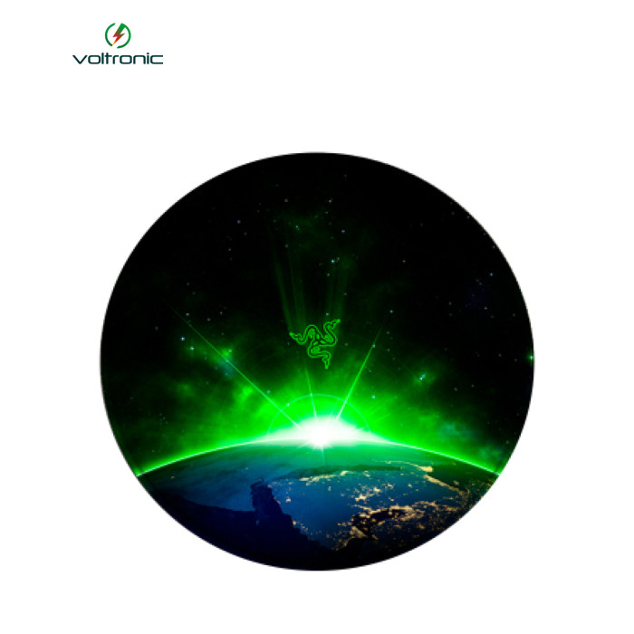 Тканинний килимок RAZER з боковою прошивкою, круглої форми, призначений для комп`ютерної миші. Має товщину 3 мм та розмір 220*220 мм. Колір - чорний із зеленими акцентами. |
