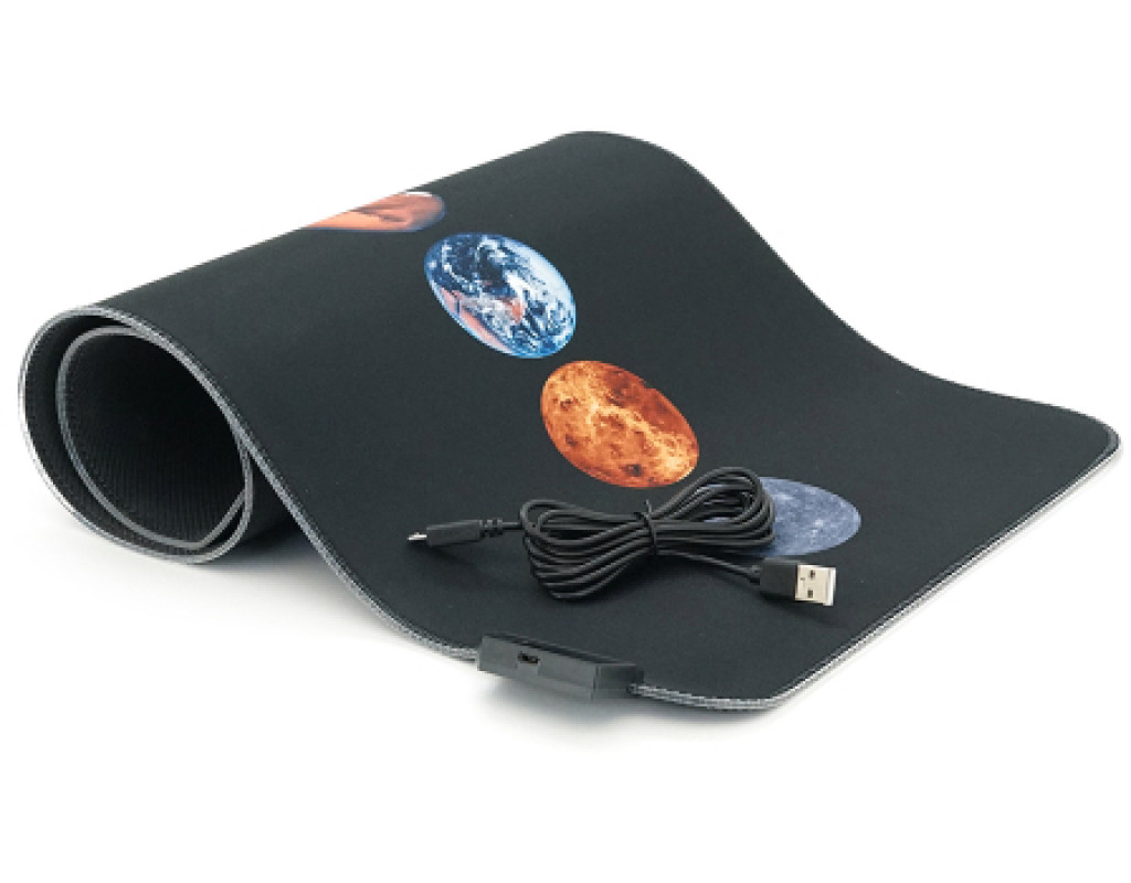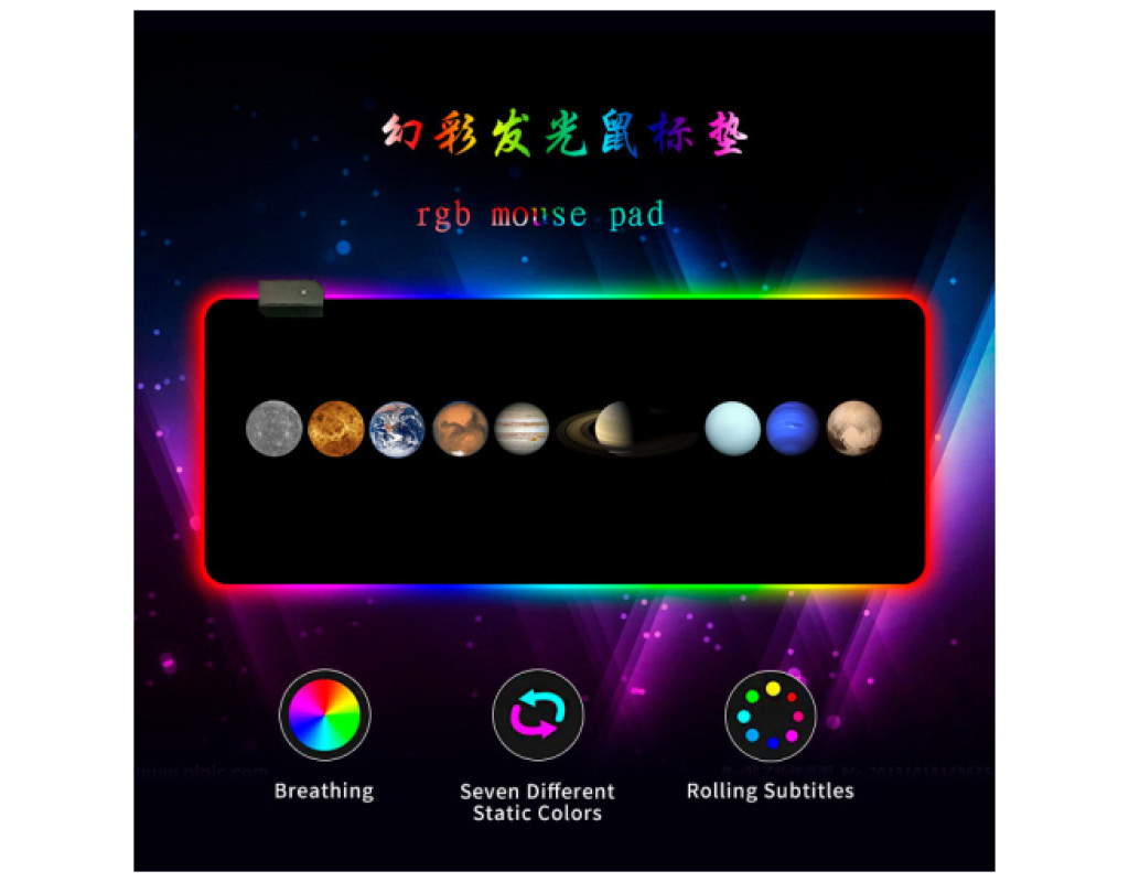 Тканинний килимок для миші "Planets marbles" з боковою прошивкою та RGB підсвічуванням. Має товщину 3 мм і поставляється у Color Box. Живлення здійснюється через кабель USB довжиною 1,8 м. |