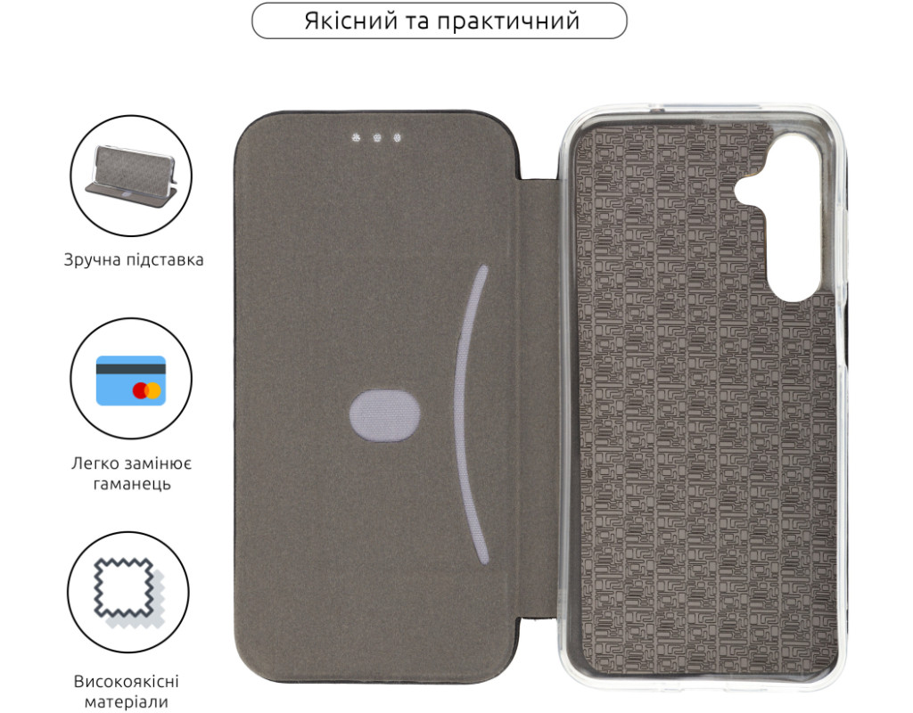 сумісність з моделями - Samsung Galaxy M35, Тип чохла для телефону - книжка, Призначення - модельний, Матеріал - штучна шкіра, Колір - чорний