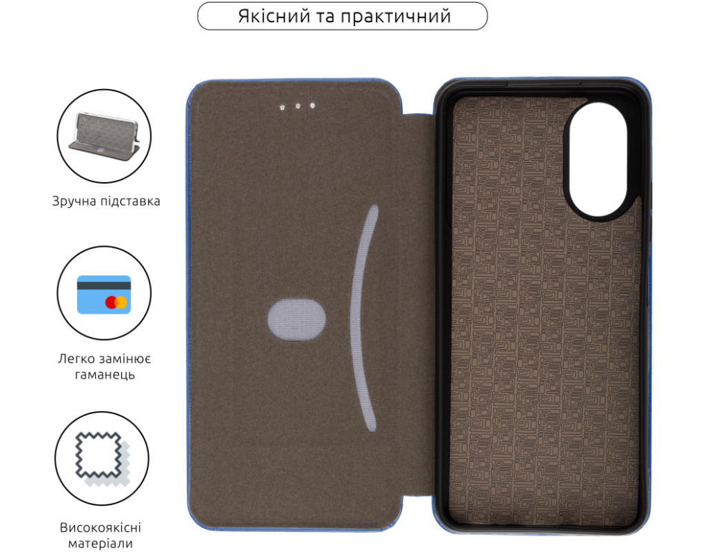 сумісність з моделями - ZTE Blade A34, Тип чохла для телефону - книжка, Призначення - модельний, Матеріал - штучна шкіра, Колір - синій