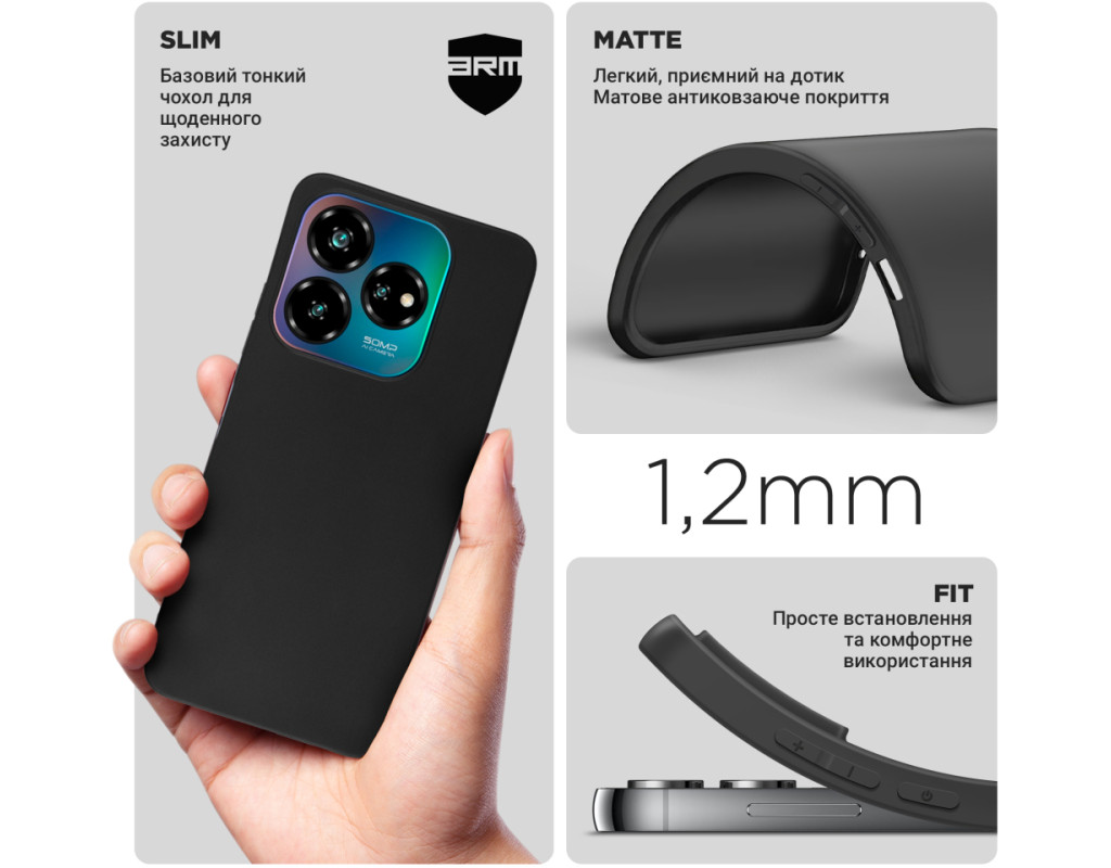 сумісність з моделями - ZTE Nubia V60 Design, Тип чохла для телефону - накладка, Призначення - модельний, Колір - чорний