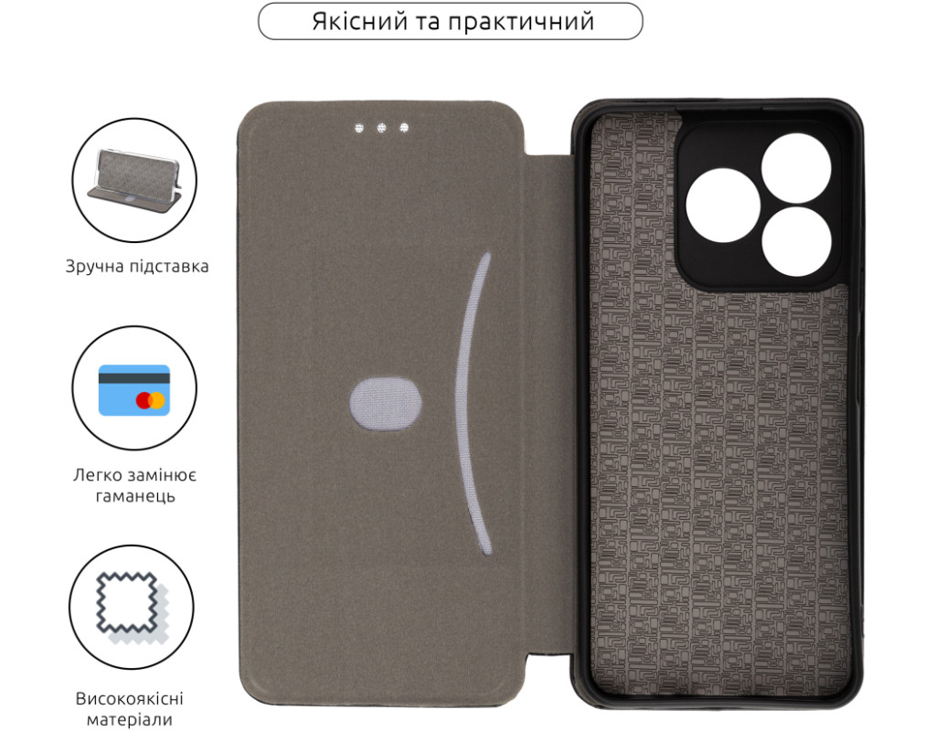 сумісність з моделями - ZTE Nubia V60, Тип чохла для телефону - книжка, Призначення - модельний, Матеріал - штучна шкіра, Колір - чорний