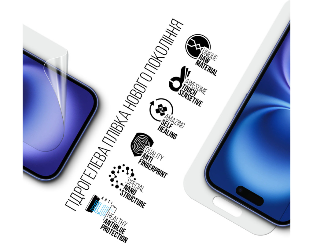 Призначення - для телефону, Вид покриття - матове, захисний, гідрогелева, Сумісність з моделями - Apple iPhone 16, Кількість в упаковці - 1 шт
