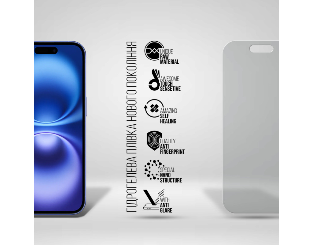 Призначення - для телефону, Вид покриття - матове, захисний, гідрогелева, Сумісність з моделями - Apple iPhone 16, Кількість в упаковці - 1 шт