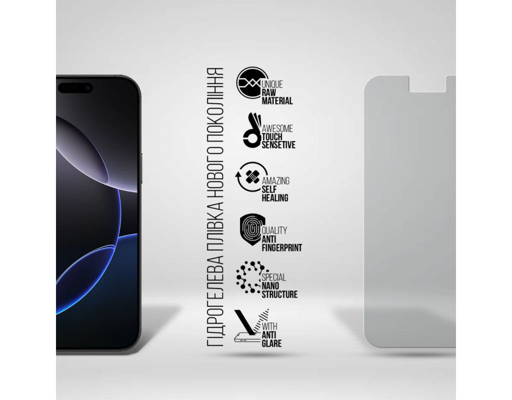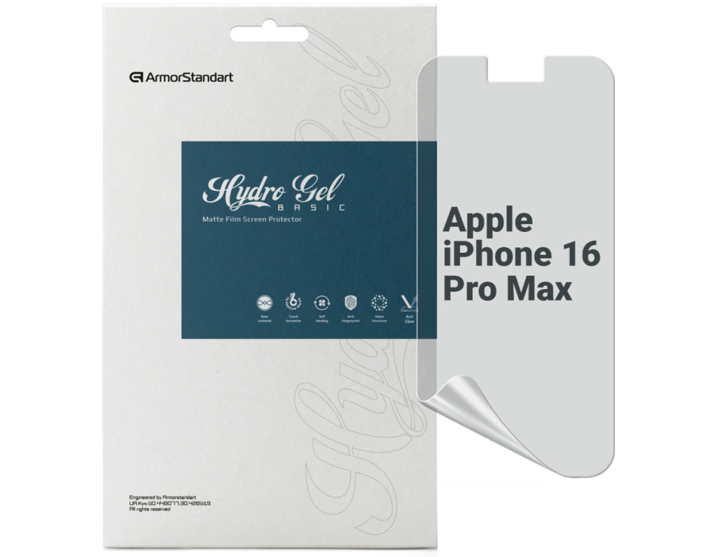 Призначення - для телефону, Вид покриття - матове, захисний, гідрогелева, Сумісність з моделями - Apple iPhone 16 Pro Max, Кількість в упаковці - 1 шт