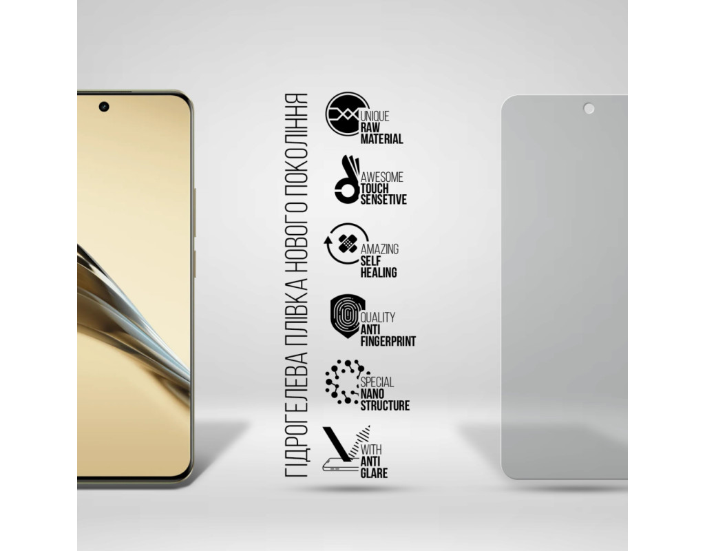 Призначення - для телефону, Вид покриття - матове, захисний, гідрогелева, Сумісність з моделями - Realme 13 Pro+ 5G, Кількість в упаковці - 1 шт