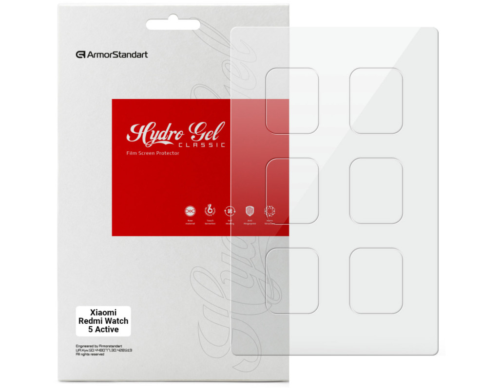 Призначення - для смарт годинника, Вид покриття - захисний, гідрогелева, Сумісність з моделями - Xiaomi Redmi Watch 5 Active, Кількість в упаковці - 6 шт