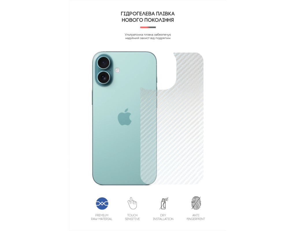 Призначення - на задню панель, Вид покриття - захисний, гідрогелева, Сумісність з моделями - Apple iPhone 16 Plus, Кількість в упаковці - 1 шт