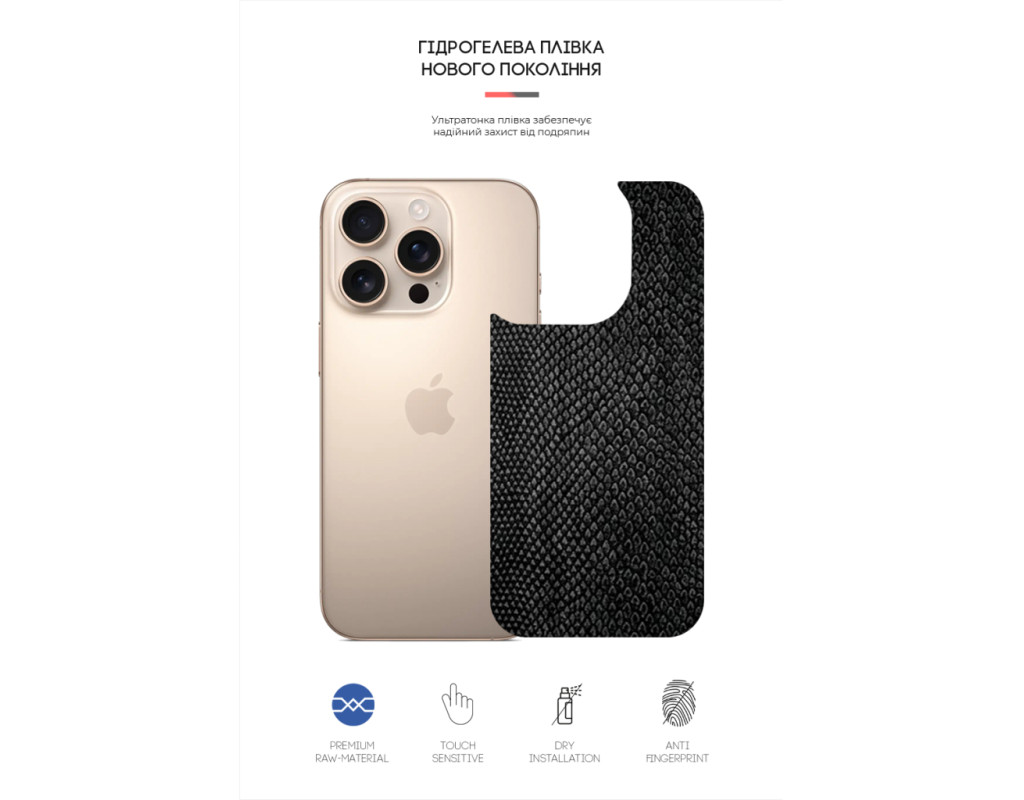 Призначення - на задню панель, Вид покриття - матове, захисний, гідрогелева, Сумісність з моделями - Apple iPhone 16 Pro, Кількість в упаковці - 1 шт