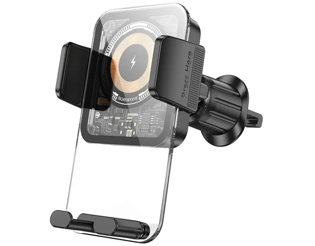 Автотримач BOROFONE BH209+ Wireless Charging 15W, кріплення на решітку, клямка 50-90мм, Black, Box
