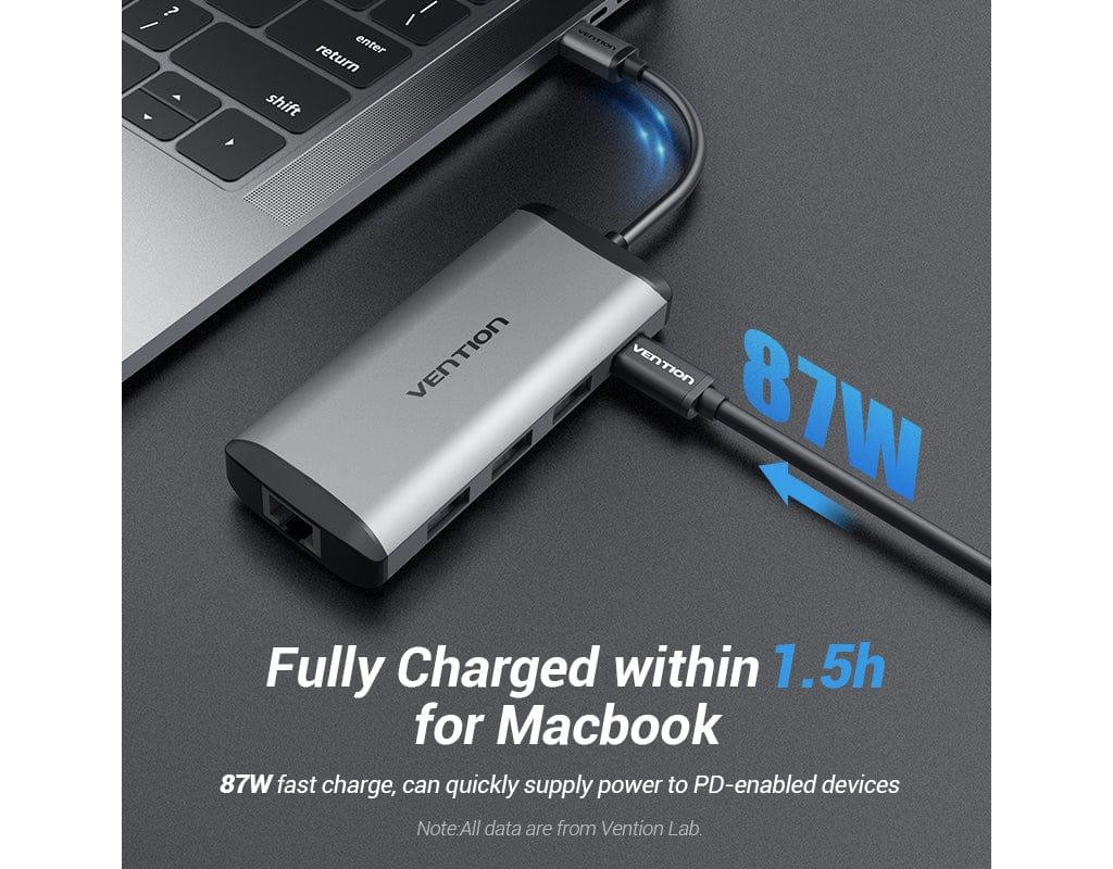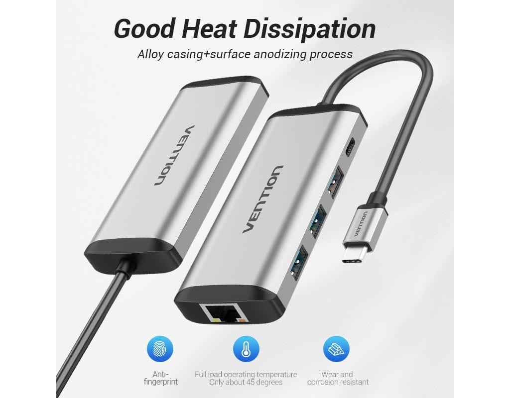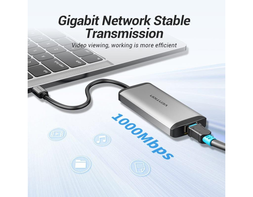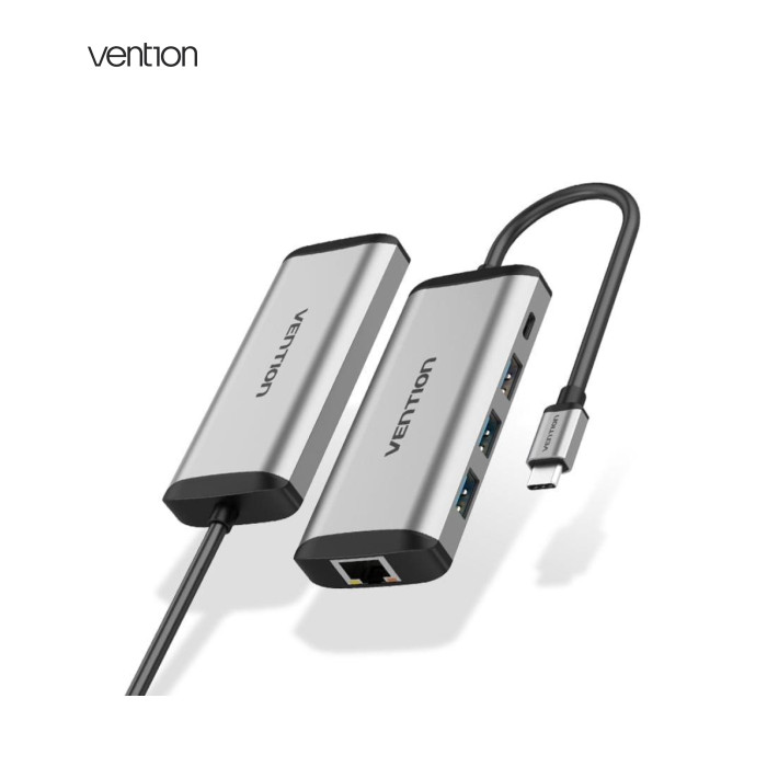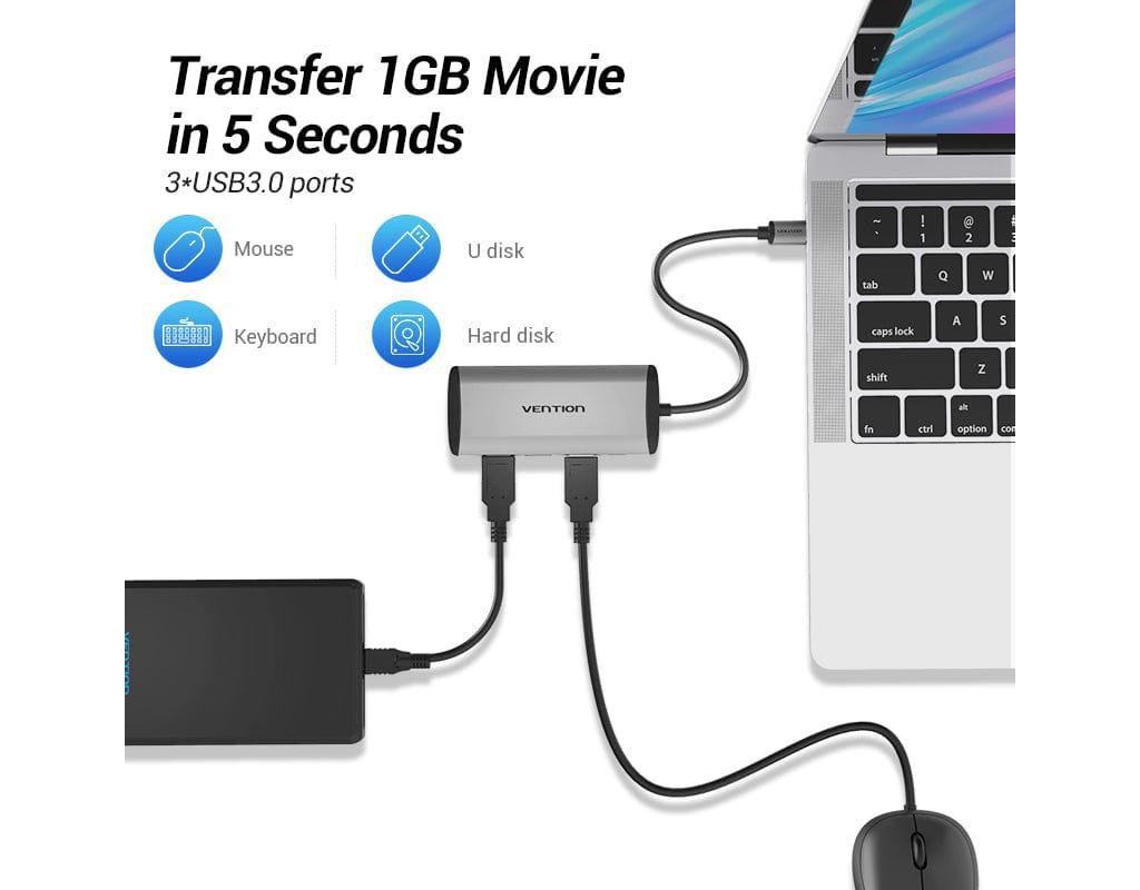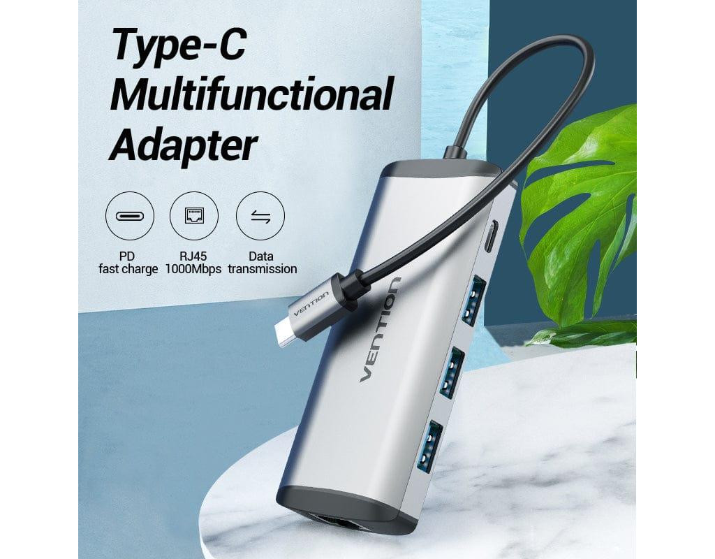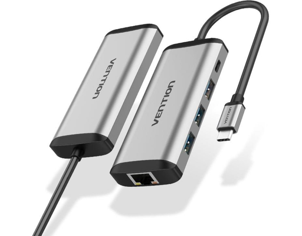 | USB хаб 5в1 Type C з 3 портами USB, 1 портом RJ45 та 1 портом зарядки PD, дозволяє підключати мишу, U-диск, клавіатуру, жорсткий диск тощо.