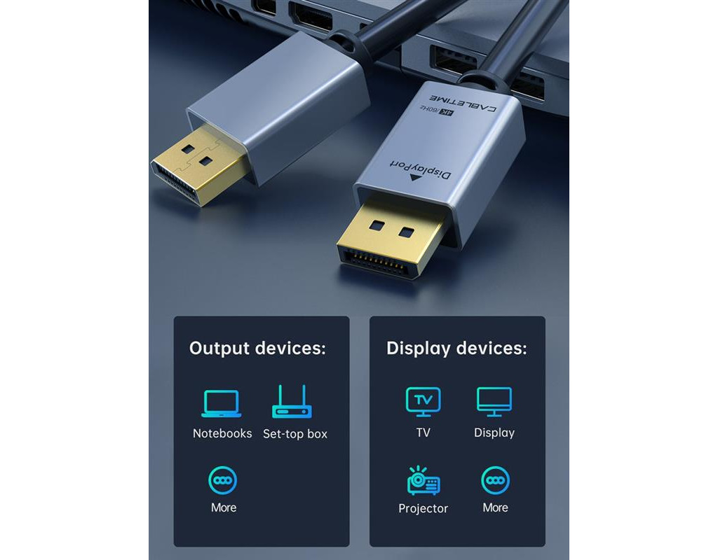 | Цифровий кабель новітнього покоління версії DisplayPort 1.2 для підключення джерела відеосигналу та пристрою відображення. Ідеально підійде для передачі відеоданих у форматі високої роздільної здатності 8K ULTRA HD (7680х4320@60Гц) і має пропускну здатність до 21.6 Гбіт/сек, а також підтримку більш ніж 32 каналів аудіо. Кабель дозволяє комутувати пристрої з роз’ємом DisplayPort. Як правило, кабель необхідний для з’єднання дисплея з комп’ютером, або аудіо та відеоапаратури із сучасним інтерфейсом DisplayPort.
