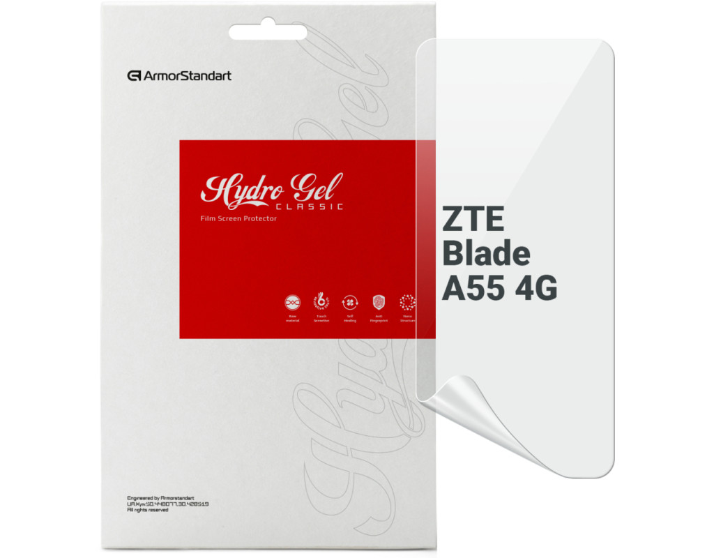 Призначення - для телефону, Вид покриття - глянсове, гідрогелева, Сумісність з моделями - ZTE Blade A55, Кількість в упаковці - 1 шт