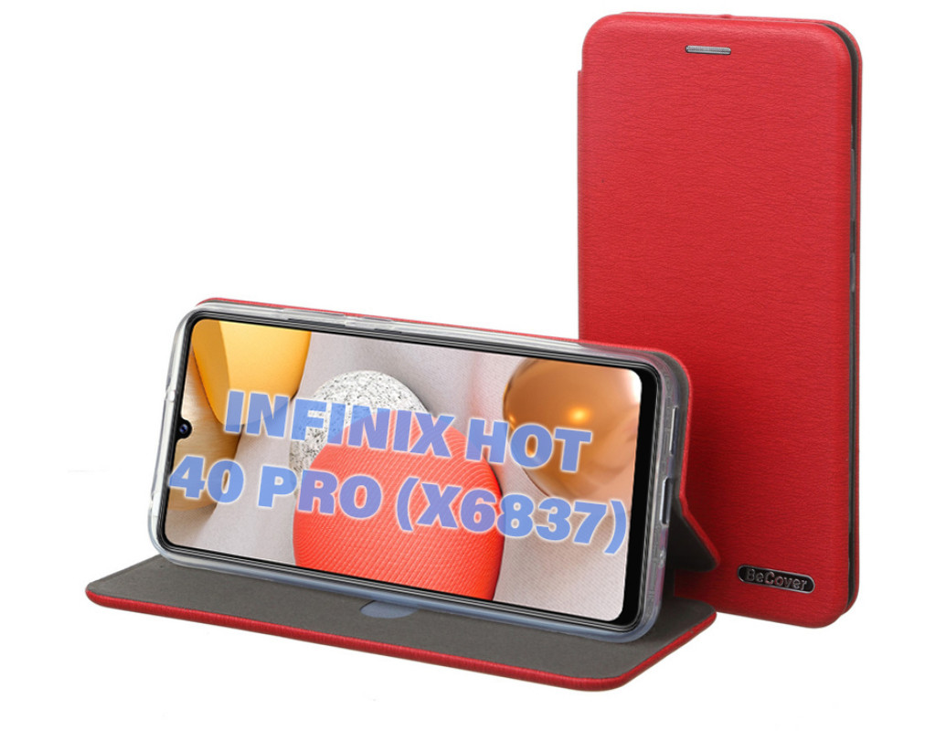 сумісність з моделями - Infinix Hot 40 Pro, Тип чохла для телефону - книжка, Призначення - модельний, Матеріал - штучна шкіра, полікарбонат, Колір - червоний