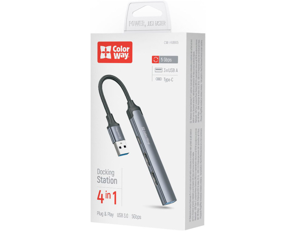 USB хаб СolorWay USB-C 4-в-1 є універсальним аксесуаром, що значно розширює функціональні можливості вашого пристрою, додаючи чотири додаткові USB порти. Цей зручний пристрій дозволяє одночасно підключати кілька зовнішніх девайсів, що значно спрощує вашу роботу і зробить її продуктивнішою. Забудьте про постійну заміну кабелів – тепер у вас завжди буде постійний доступ до всіх необхідних пристроїв, таких як клавіатури, миші, зовнішні жорсткі диски та інші периферійні пристрої. Особливості
