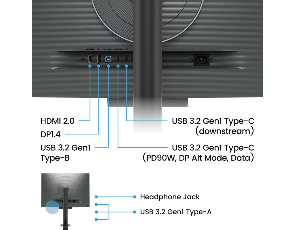 KVM-перемикач, USB-C Power Delivery 90 Вт, BenQ Nano Matte Panel, HDR10, VESA DisplayHDR 400, Настроювана підсвітка задньої панелі |